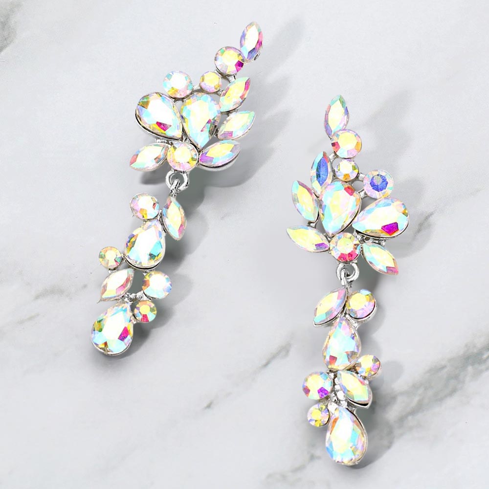 Multi Stone Cluster Vine Dangle Evening Earrings