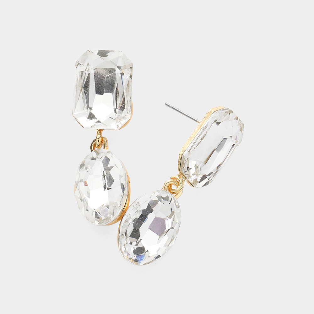 Oval Glass Stone Cluster Dangle Evening Earrings