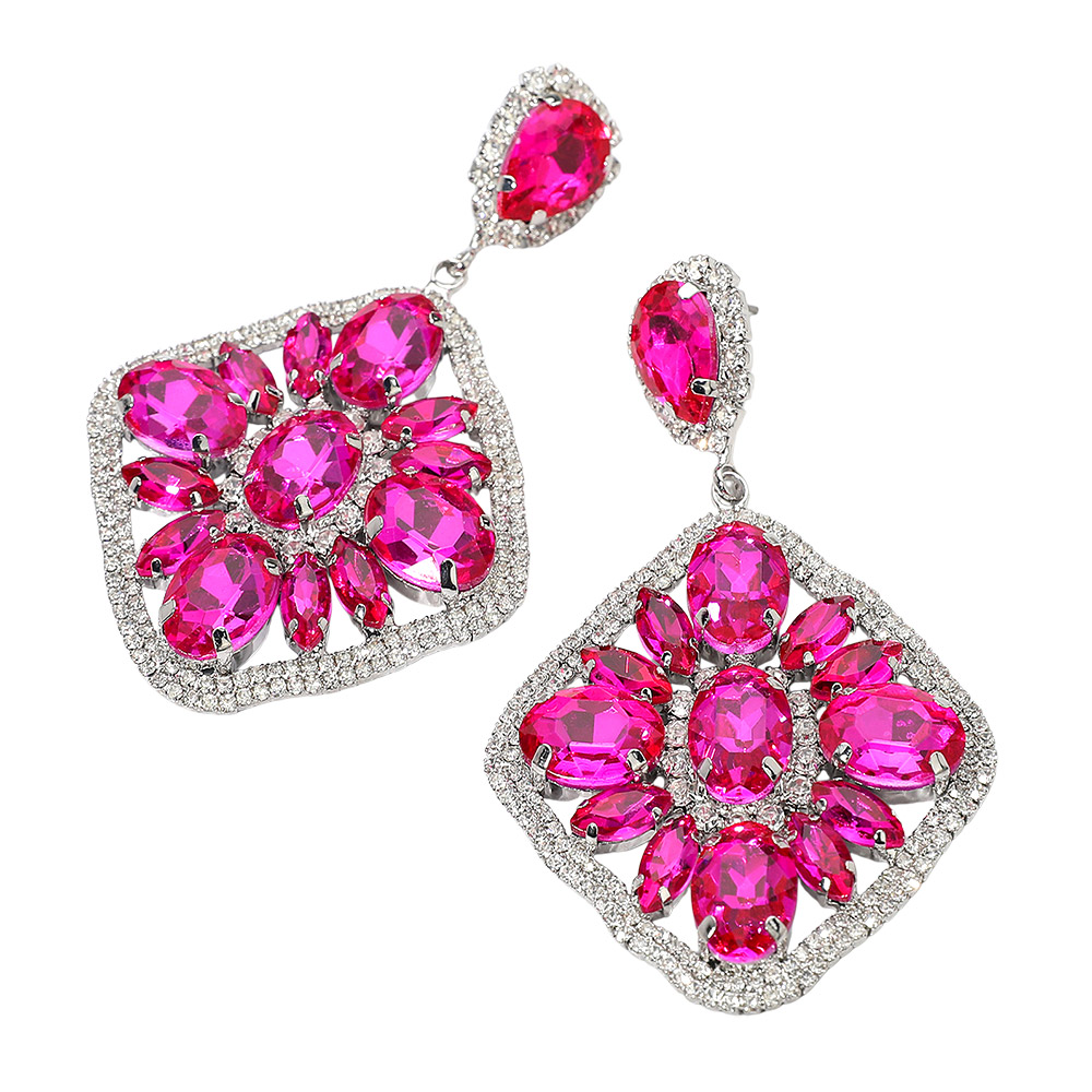 Oval Marquise Stone Cluster Accented Rhinestone Rhombus Dangle Evening Earrings Oval Marquise Stone Cluster Accented Rhinestone Rhombus Dangle Evening Earrings