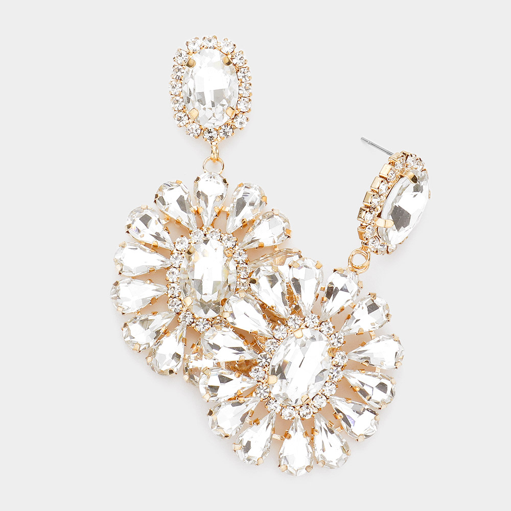 Oval Stone Centered Teardrop Cluster Evening Earrings