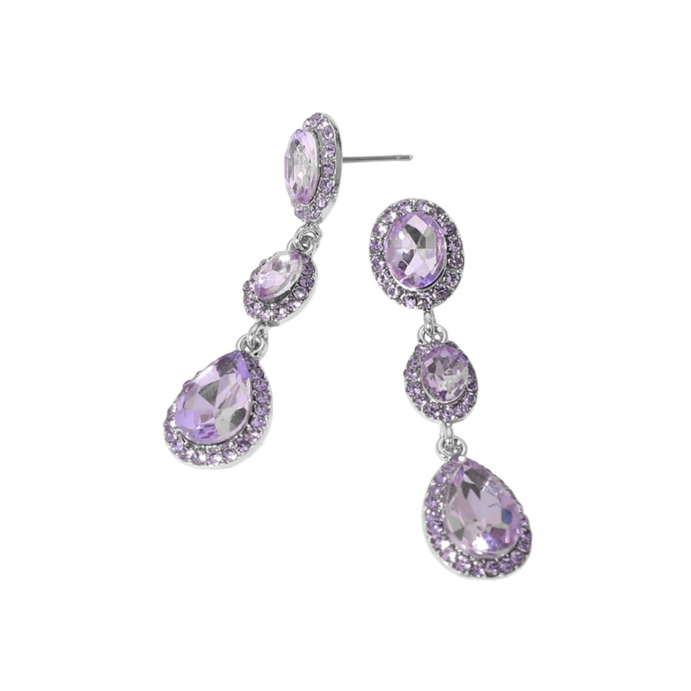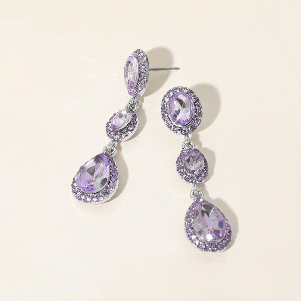 Oval Teardrop Stone Cluster Link Dropdown Evening Earrings