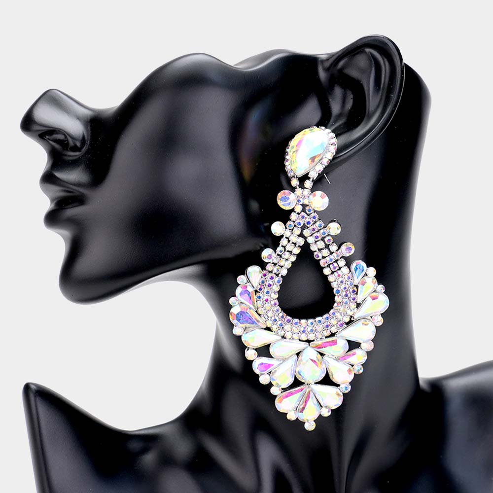 Pear Crystal Rhinestone Pageant Evening Earrings