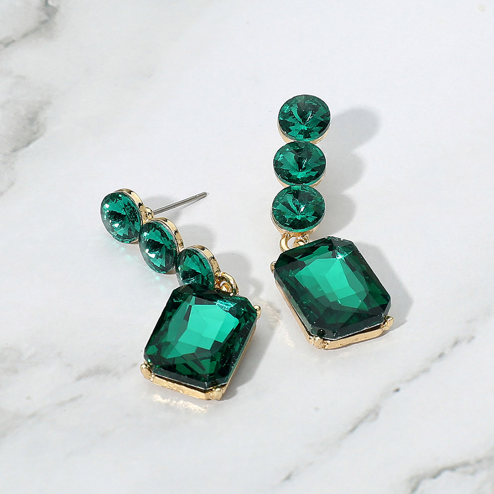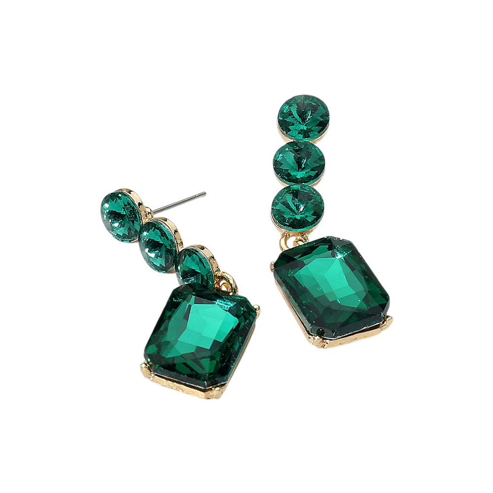 Details • Size : 0.5" X 1.9" • Post Back • These geometric crystal drop earrings feature round and rectangular faceted stones in a sleek cascading design. Perfect for adding modern elegance to evening wear, parties, or special occasions, they combine bold sparkle with sophisticated style. • Lead and Nickel Compliant