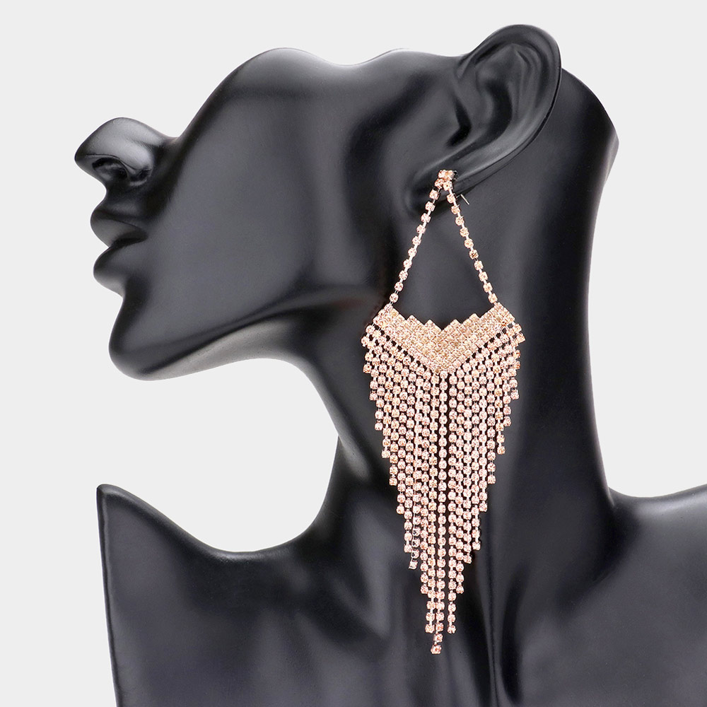 Teardrop Round Stone Accented Tassel Fringe Dangle Earrings