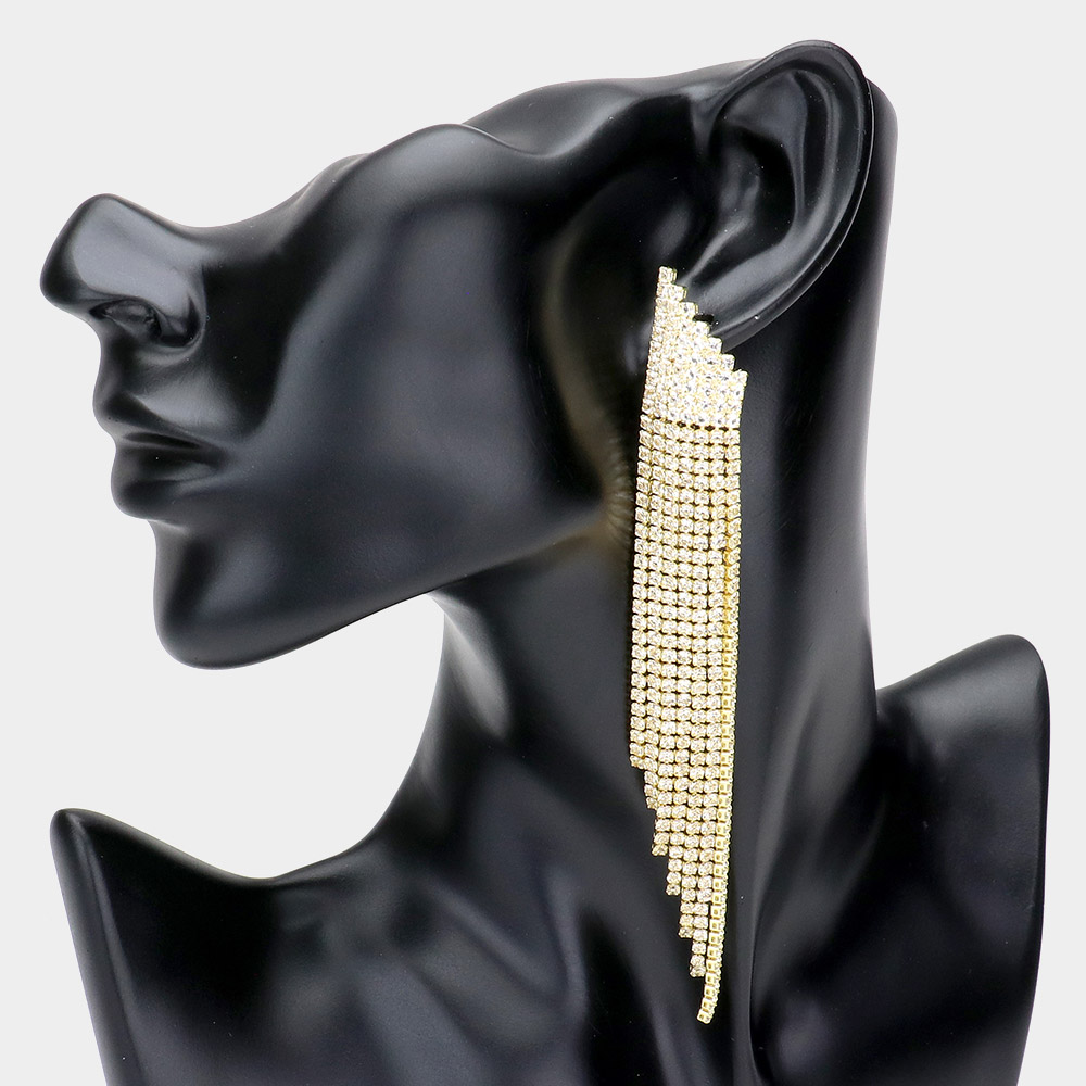 Rhinestone Pave Fringe Teardrop Evening Earrings