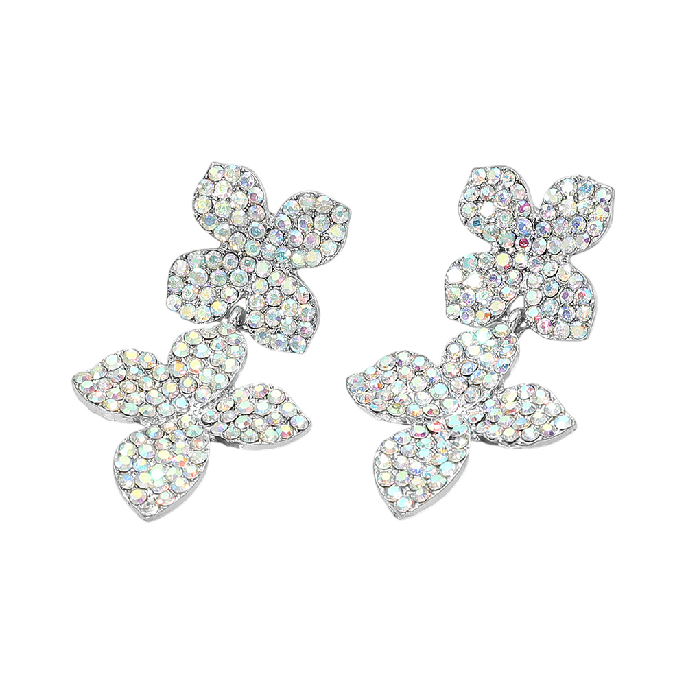 • Add a touch of sophistication with these rhinestone floral drop earrings, featuring a layered petal design that sparkles beautifully. Perfect for weddings, parties, or evening wear, they bring timeless glamour to every occasion.