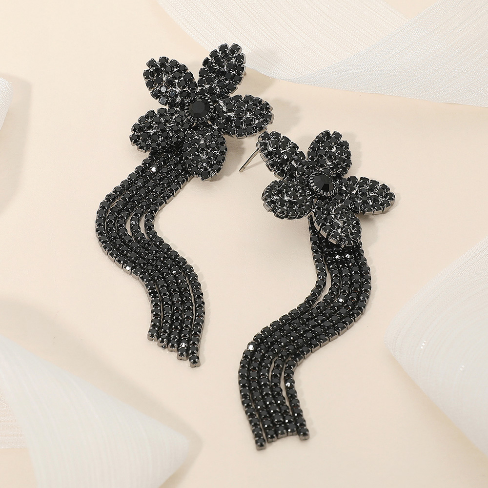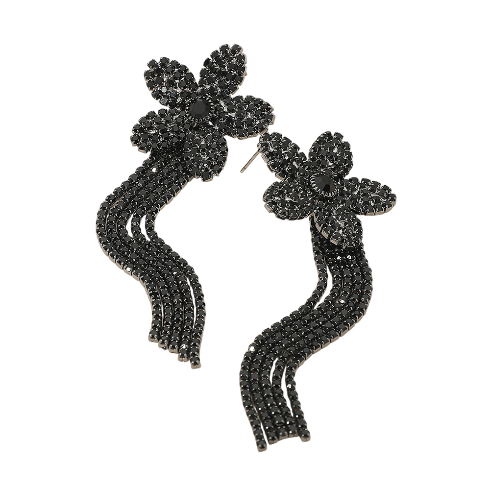 Rhinestone Paved Flower Fringe Evening Earrings Rhinestone Paved Flower Fringe Evening Earrings