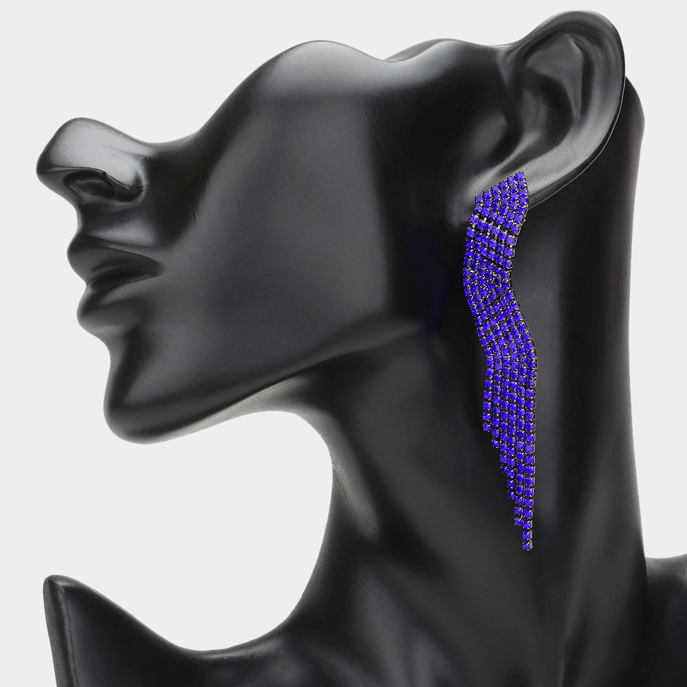 • Dazzling cascading rhinestone earrings designed to create a bold and elegant statement. Perfect for evening events, parties, or formal occasions, these long earrings add radiant sparkle and sophistication. A glamorous accessory that elevates your style with timeless shine and eye-catching appeal.