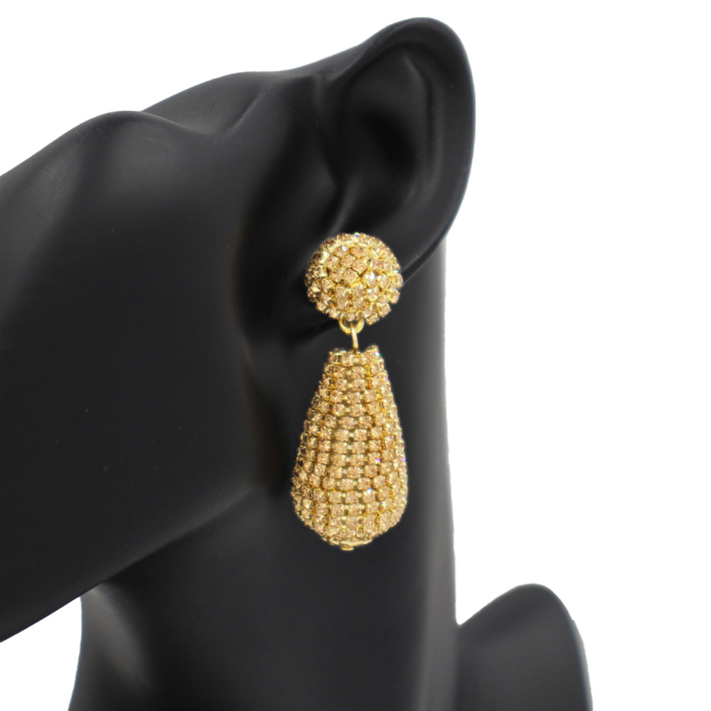 • Elegant teardrop crystal ball earrings with dazzling pave detailing. Designed to catch the light, these statement drop earrings are perfect for evening wear, weddings, or parties, adding sophistication and sparkle to any outfit with their bold and glamorous design.