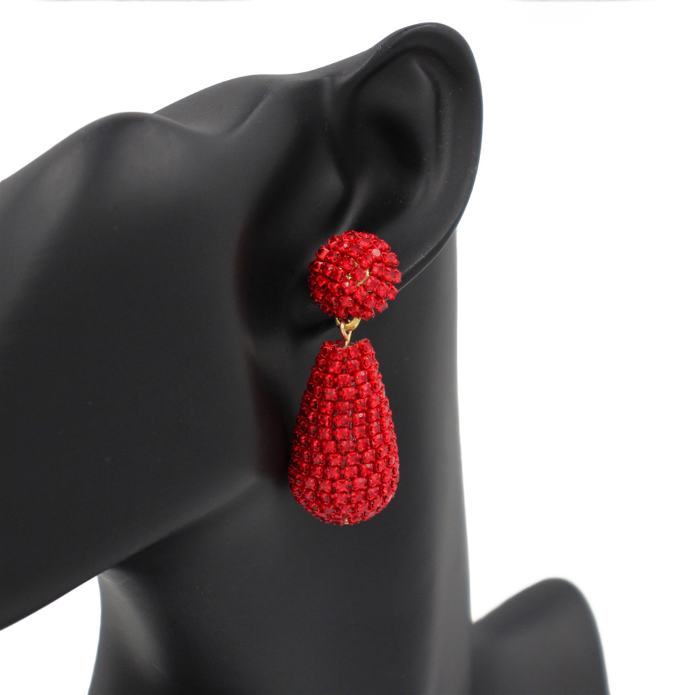 Details • Size : 0.75" X 2.1" • Post Back • Elegant teardrop crystal ball earrings with dazzling pave detailing. Designed to catch the light, these statement drop earrings are perfect for evening wear, weddings, or parties, adding sophistication and sparkle to any outfit with their bold and glamorous design. • Lead and Nickel Compliant
