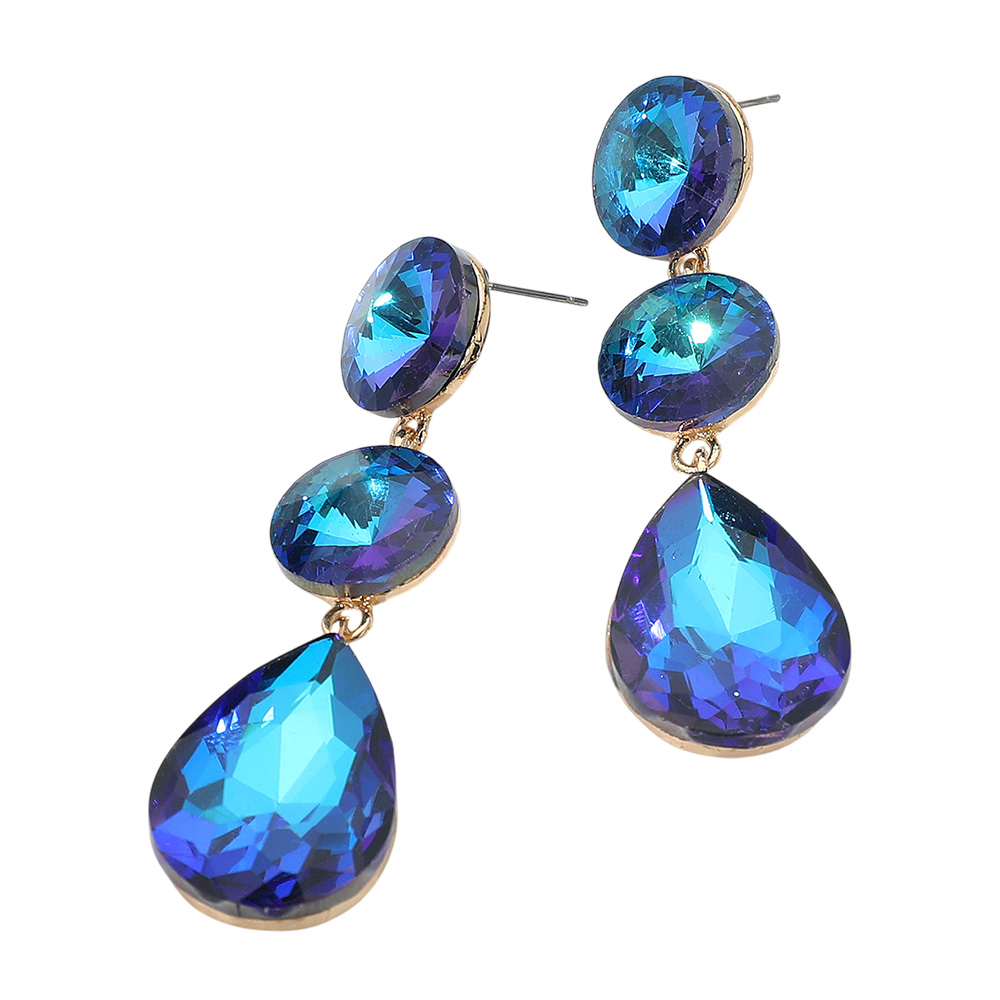 • Bold teardrop dangle earrings with faceted stones and round stud accents. Designed for a striking, glamorous touch, these earrings are ideal for evening events, weddings, or adding sparkle to any special occasion.
