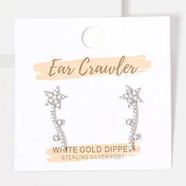 Clear Stone Detail Rhinestone Pave Half Hoop Earrings