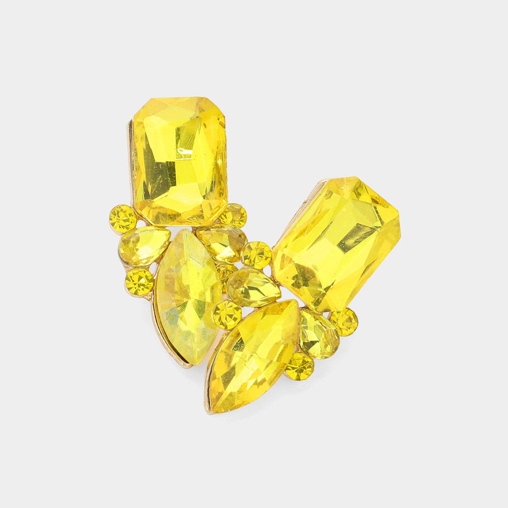 14K Gold Dipped Stone Paved Triple Loop Stud Earrings
