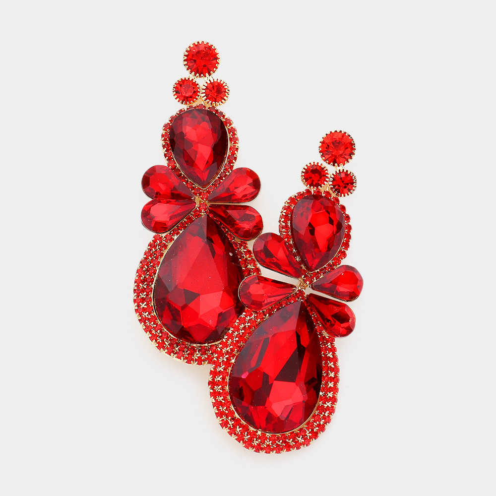 Flower Teardrop Stone Cluster Dangle Evening Earrings
