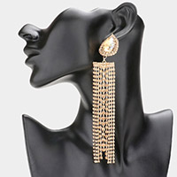 Teardrop Accented Rhinestone Fringe Dangle Evening Earrings