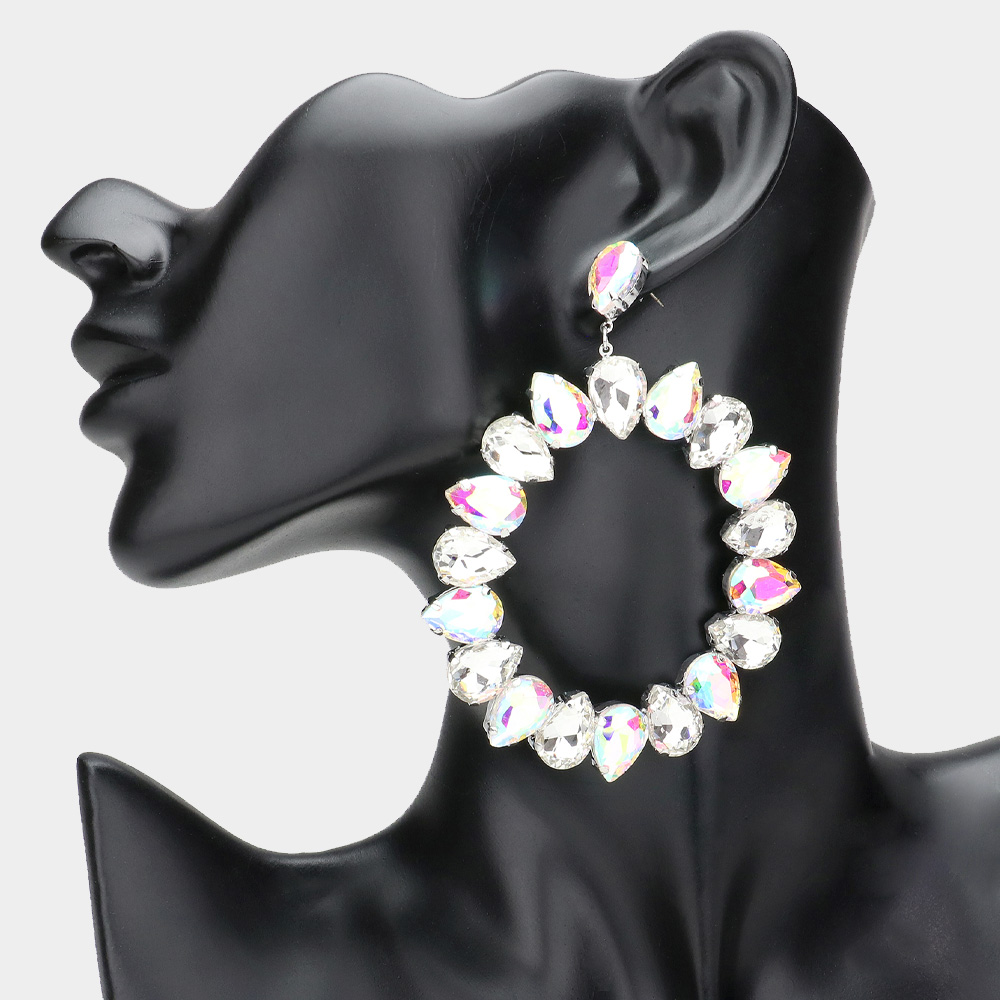 Teardrop Glass Crystal Open Circle Evening Earrings