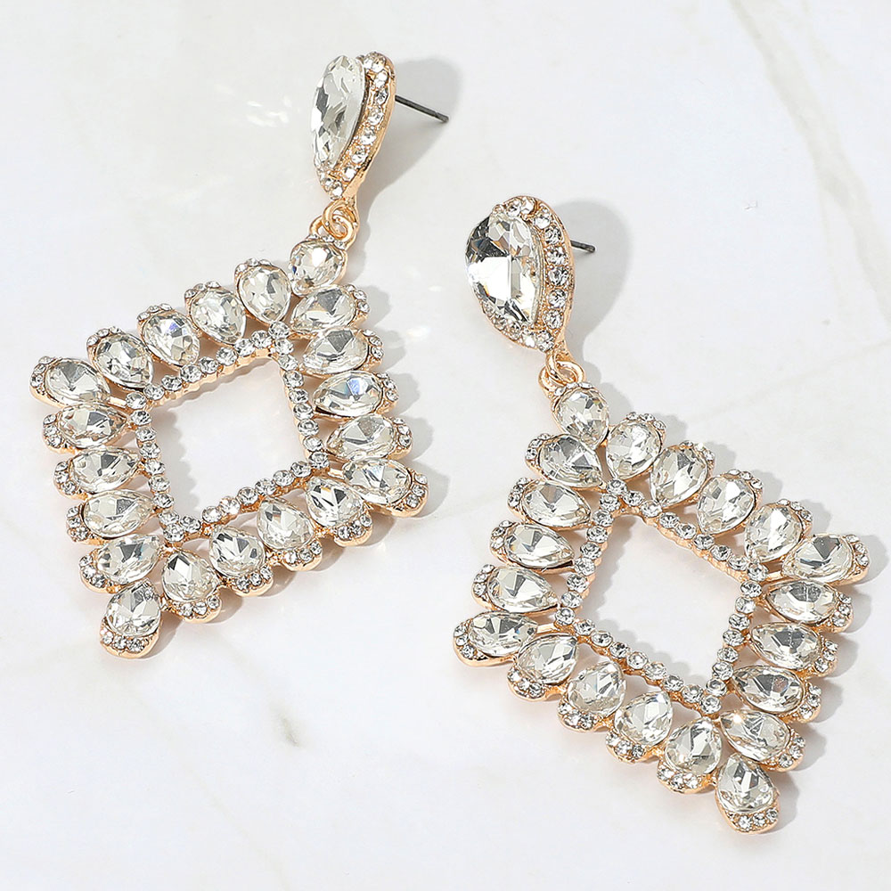 Details • Size : 1.8" X 3.5" • Post Back • Elevate your style with these glamorous square drop earrings adorned with faceted crystals for a radiant sparkle. Perfect for parties, weddings, or evening events, these statement earrings bring a touch of luxury and sophistication to any outfit, making every moment shine. • Lead and Nickel Compliant
