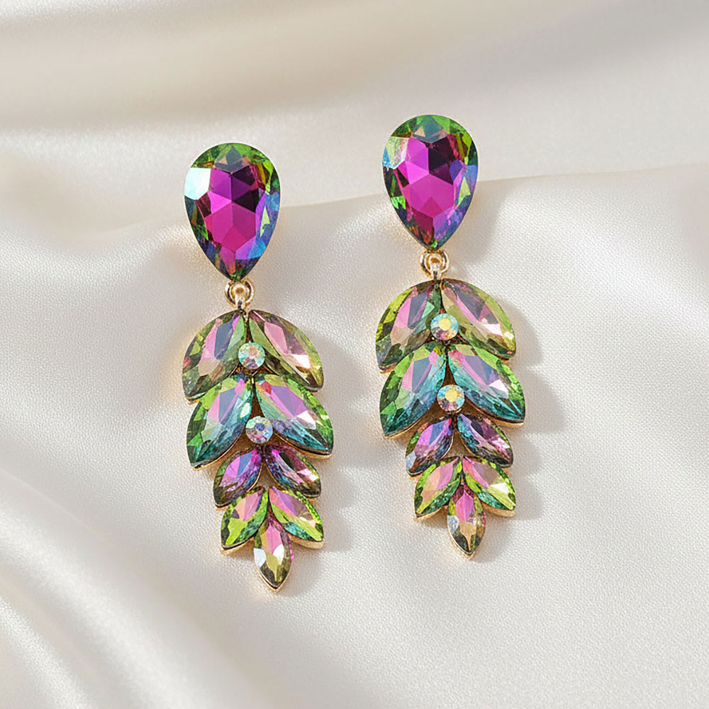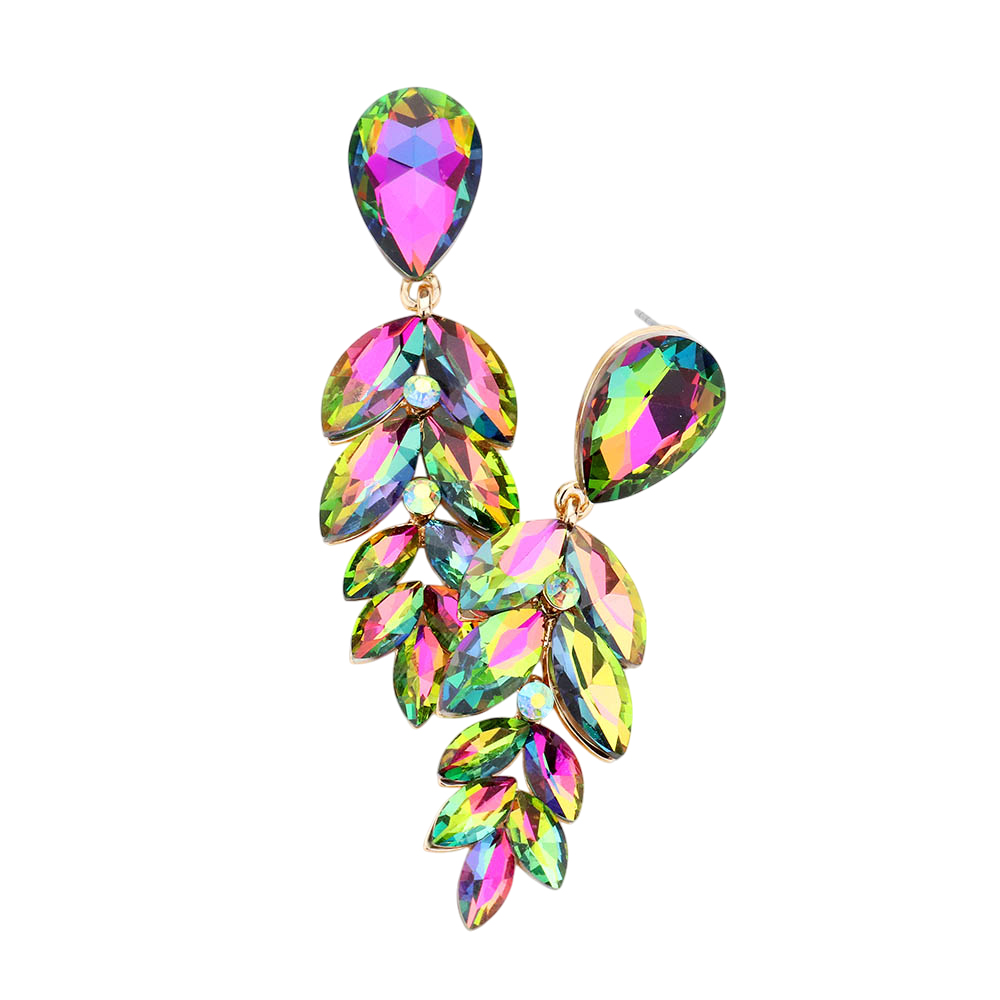 • Elegant drop earrings featuring a teardrop top and cascading marquise-cut stones arranged in a leaf-inspired silhouette. Light-catching and refined, these statement earrings add a glamorous finishing touch to evening outfits or special occasions.