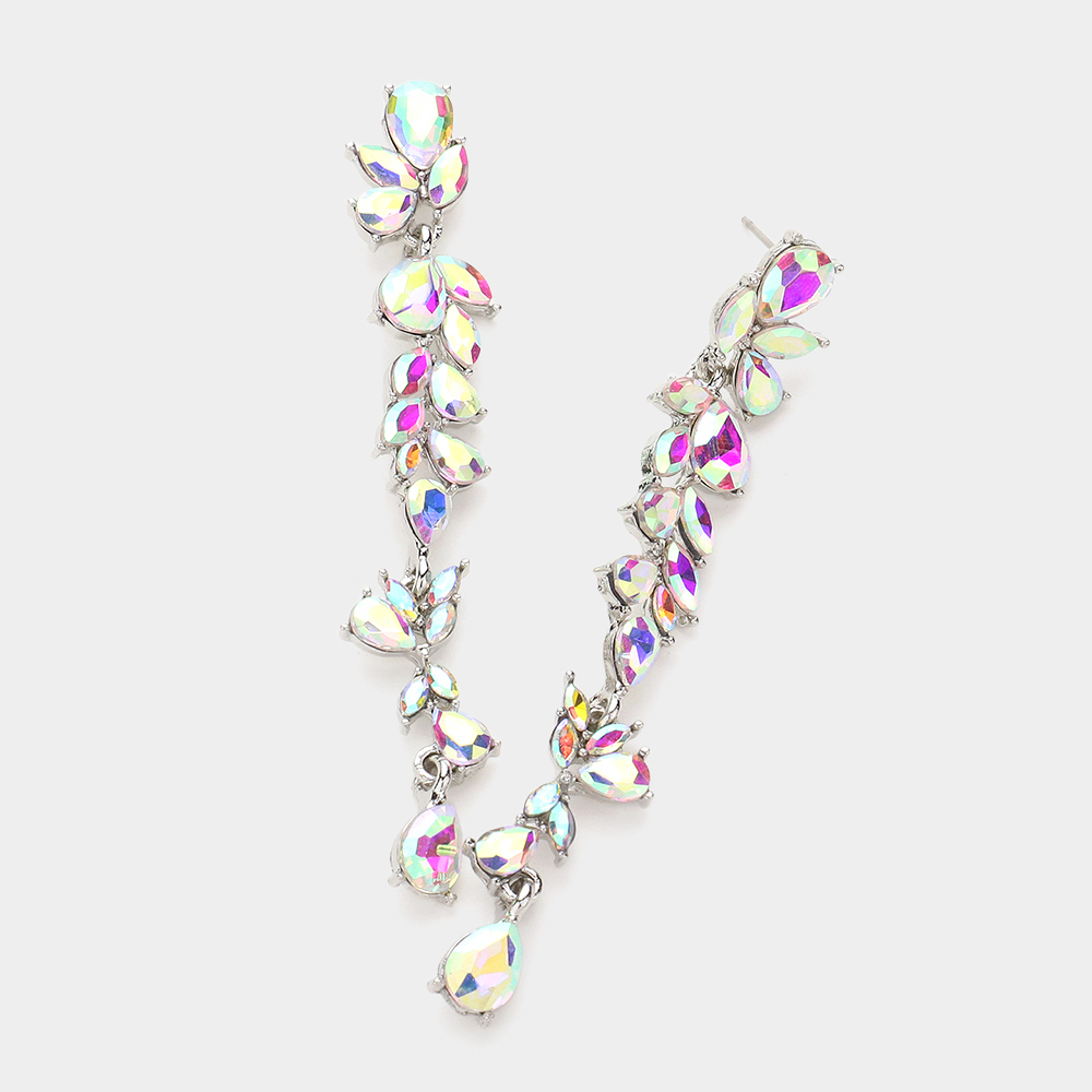 Teardrop Marquise Stone Cluster Embellished Dropdown Evening Earrings