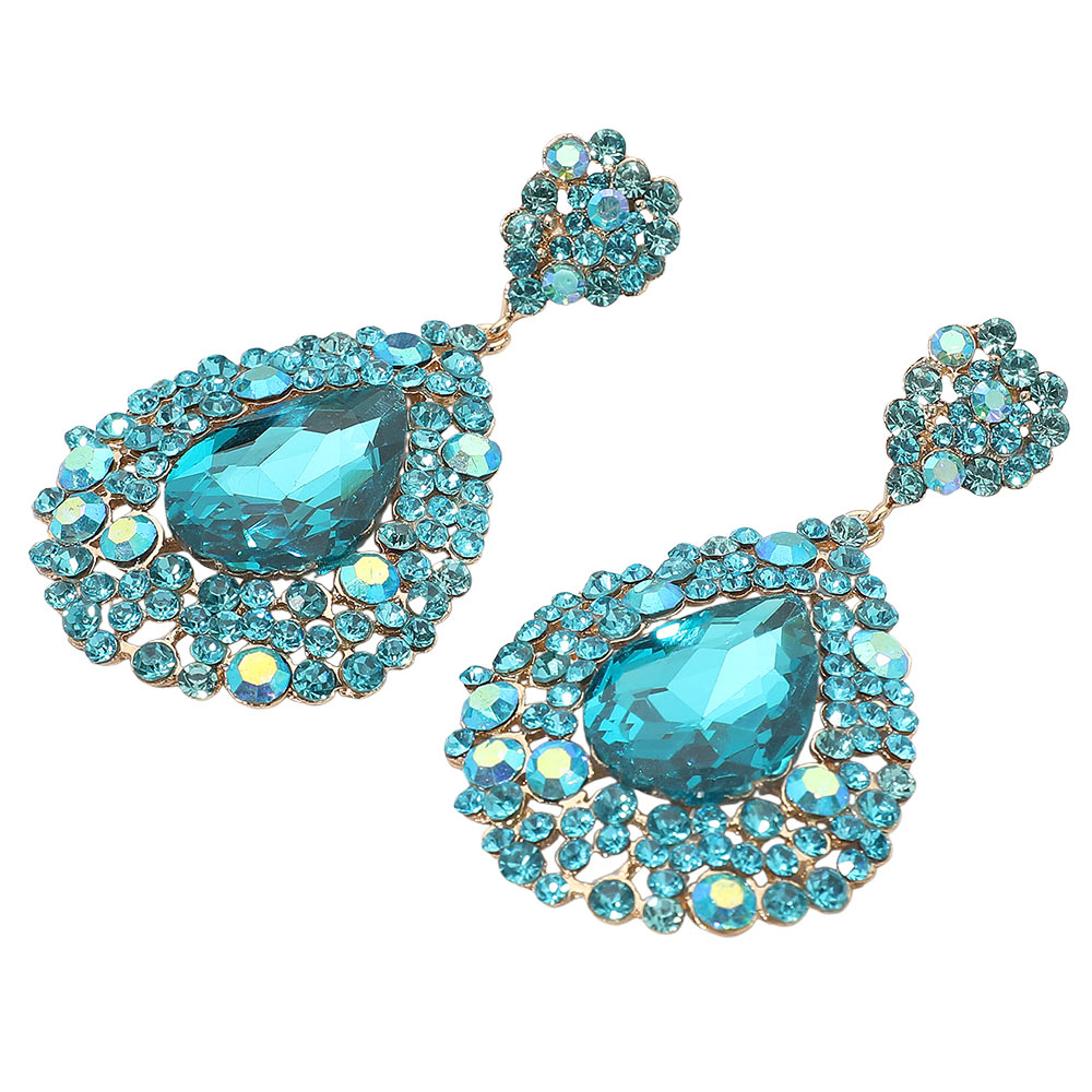 Teardrop Pointed Rhinestone Embellished Dangle Evening Earrings