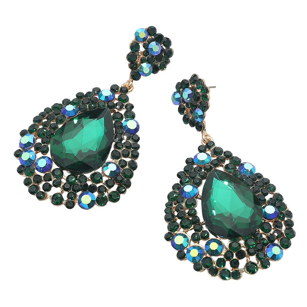 Details • Size : 1.75" X 3" • Post Back • Turn heads with these bold teardrop statement earrings featuring a dramatic faceted design that exudes elegance and confidence. Perfect for formal occasions, parties, or night outs, these earrings add a touch of glamour and sophistication to any chic ensemble. • Lead and Nickel Compliant