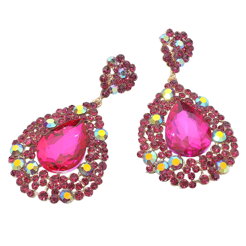 Teardrop Pointed Rhinestone Embellished Dangle Evening Earrings