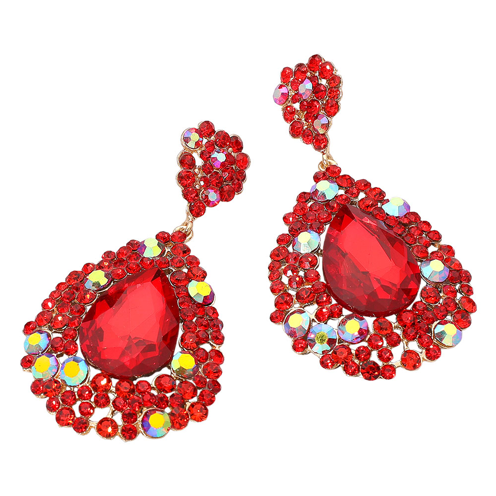 Details • Size : 1.75" X 3" • Post Back • Turn heads with these bold teardrop statement earrings featuring a dramatic faceted design that exudes elegance and confidence. Perfect for formal occasions, parties, or night outs, these earrings add a touch of glamour and sophistication to any chic ensemble. • Lead and Nickel Compliant