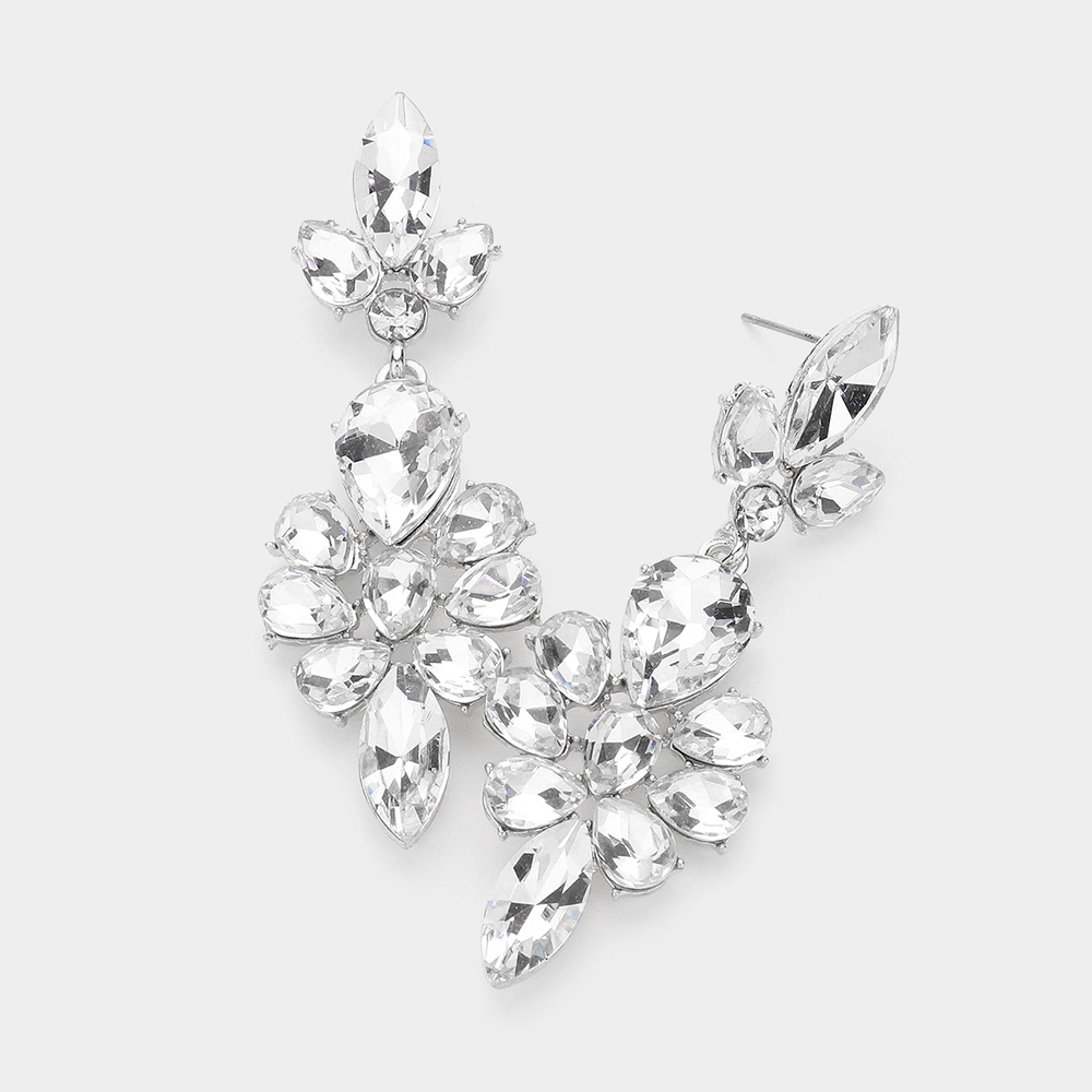 Teardrop Stone Cluster Embellished Dangle Evening Earrings