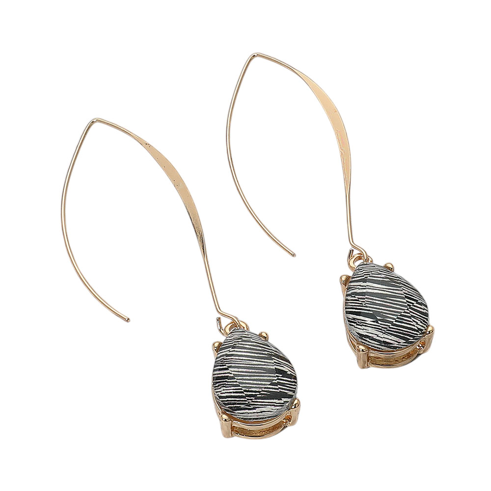 • Add refined style to your look with these teardrop dangle earrings featuring a sleek hook design and faceted gemstone accent. Perfect for both casual wear and special occasions.