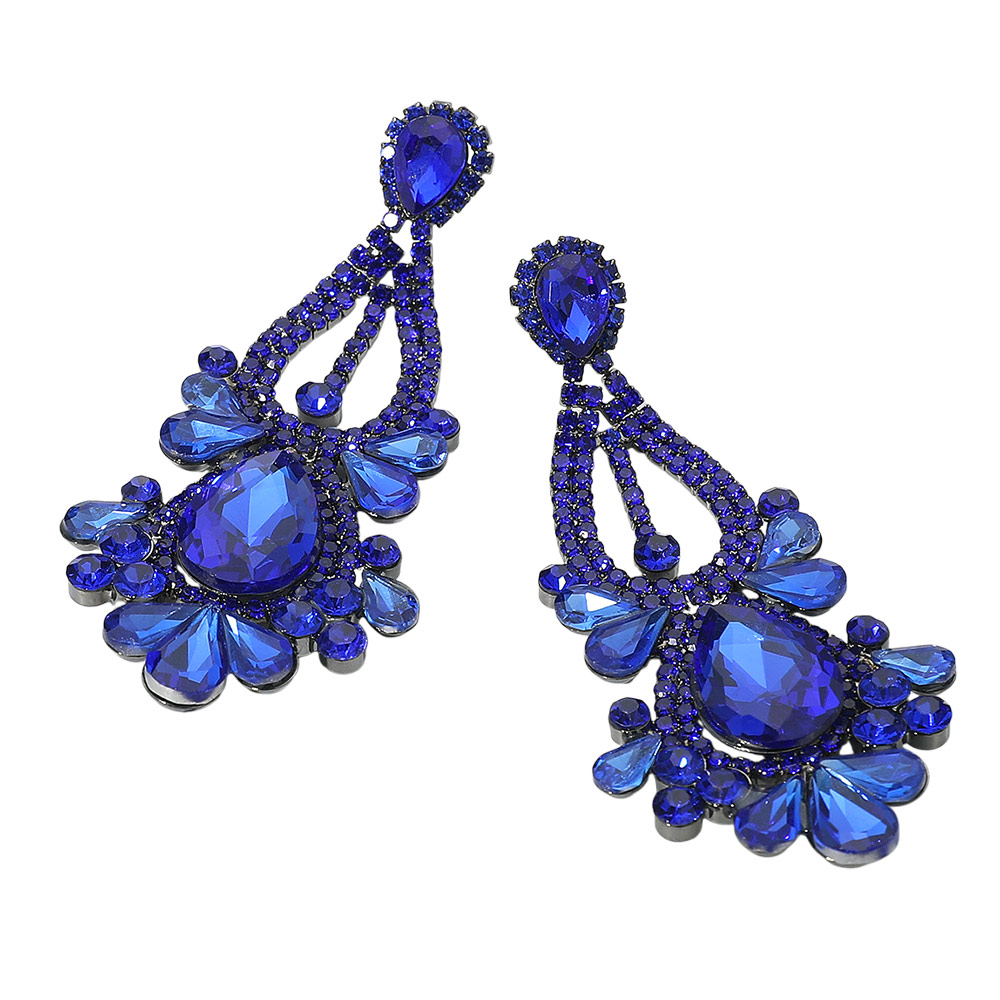 Details • Size : 1.5" X 3.1" • Post Back • Turn heads with these iridescent teardrop statement earrings, featuring a dazzling arrangement of shimmering stones and intricate detailing. Perfect for parties, weddings, and glamorous occasions, these earrings add a bold touch of sparkle and sophistication to any elegant look. • Lead and Nickel Compliant