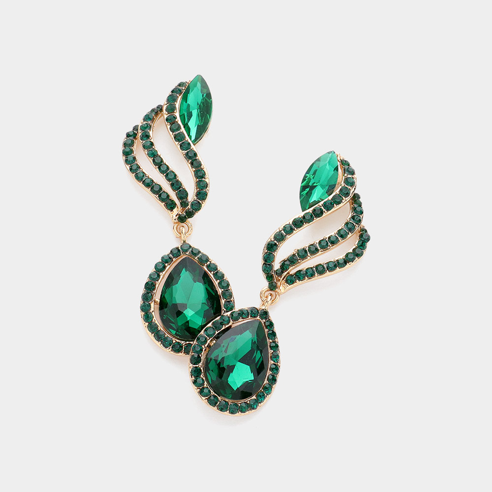 Teardrop Stone Pointed Rhinestone Paved Dangle Evening Earrings