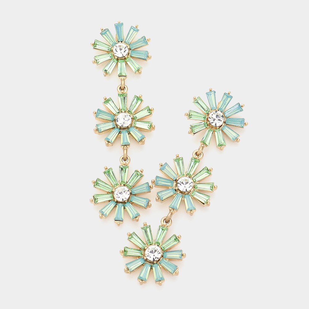 Triple Flower Link Dangle Evening Earrings