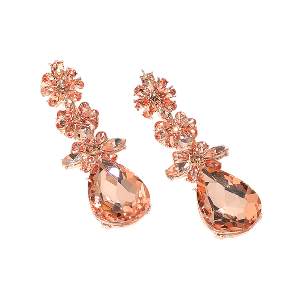 • These floral crystal teardrop earrings feature dazzling flower motifs leading to a radiant teardrop gem for a stunning finish. Perfect for weddings, formal events, or special evenings, they offer timeless glamour and sparkle that enhances every look with refined sophistication.