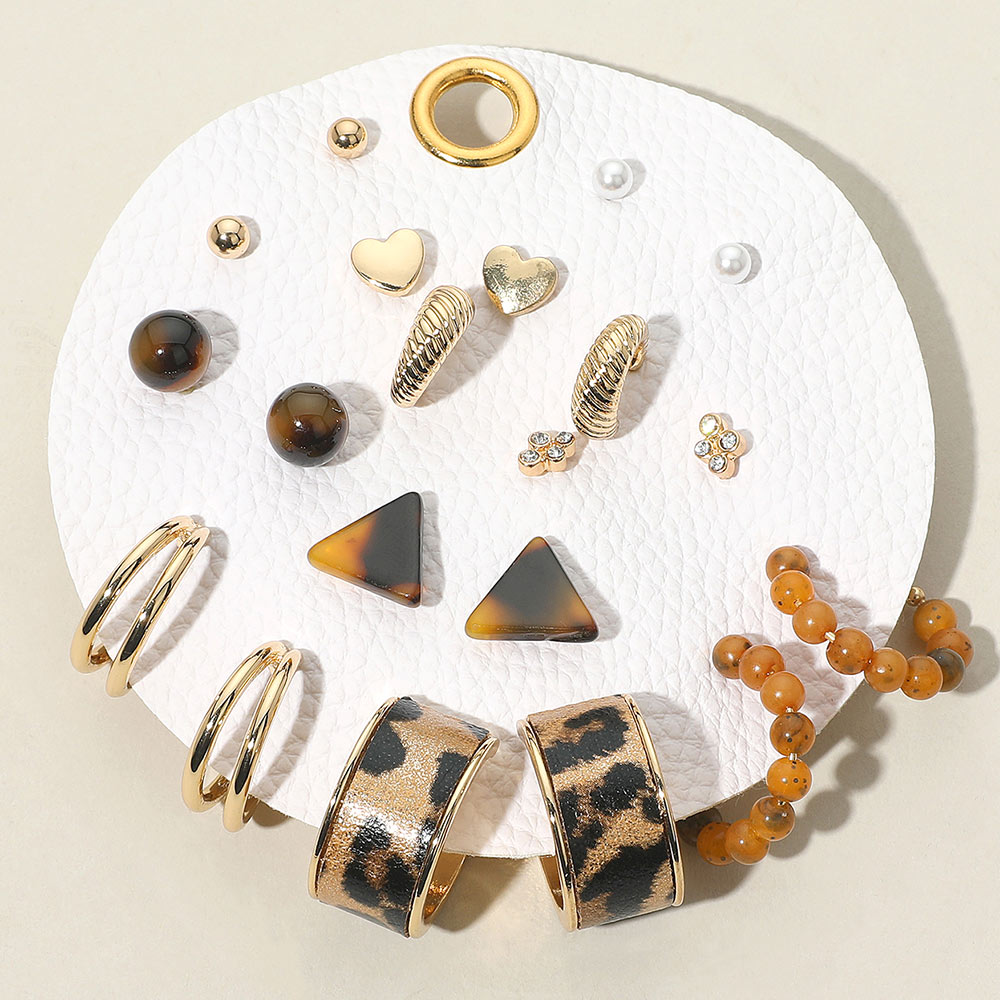 Details • Size : 0.1" - 0.8" L • Post Back • Elevate your look with this 10-piece earring set featuring a stylish mix of hoops, heart studs, triangle accents, and bold patterns. This versatile collection lets you switch from classic to playful in seconds—perfect for mixing and matching to suit any outfit. • Lead and Nickel Compliant