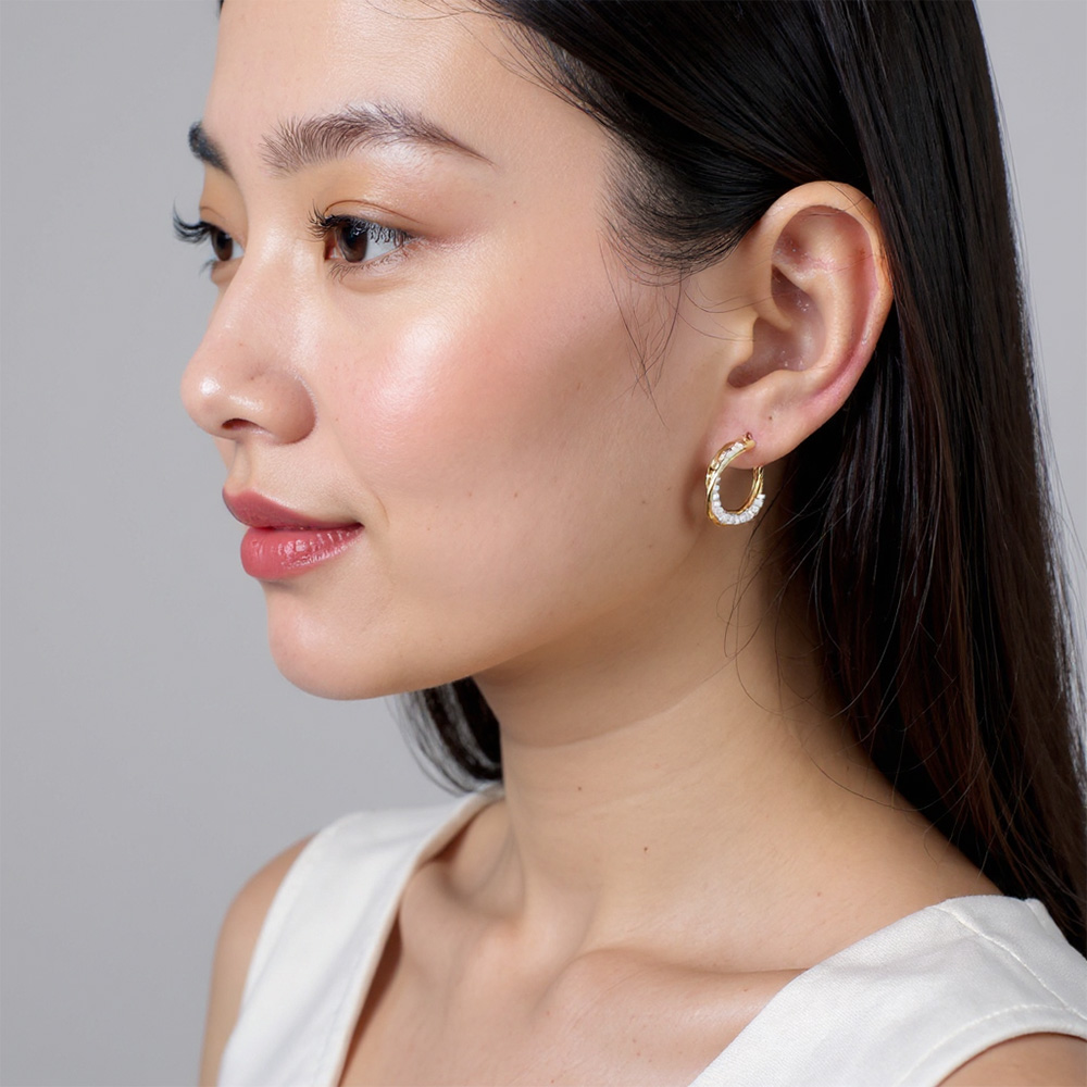 Details • Size : 0.7" X 0.7" • Post Back • These chic hoop earrings feature a sleek open hoop design accented with a row of delicate beads for a refined and modern touch. Perfect for everyday wear or special occasions, they offer a timeless balance of elegance and style to enhance any jewelry collection. • Brass • Gold Dipped • Hypoallergenic • Lead and Nickel Compliant • Made In Korea