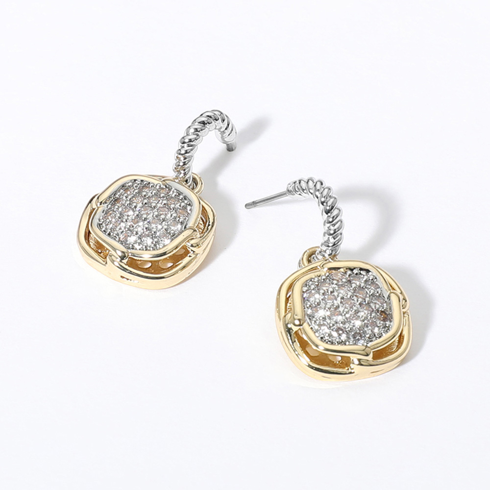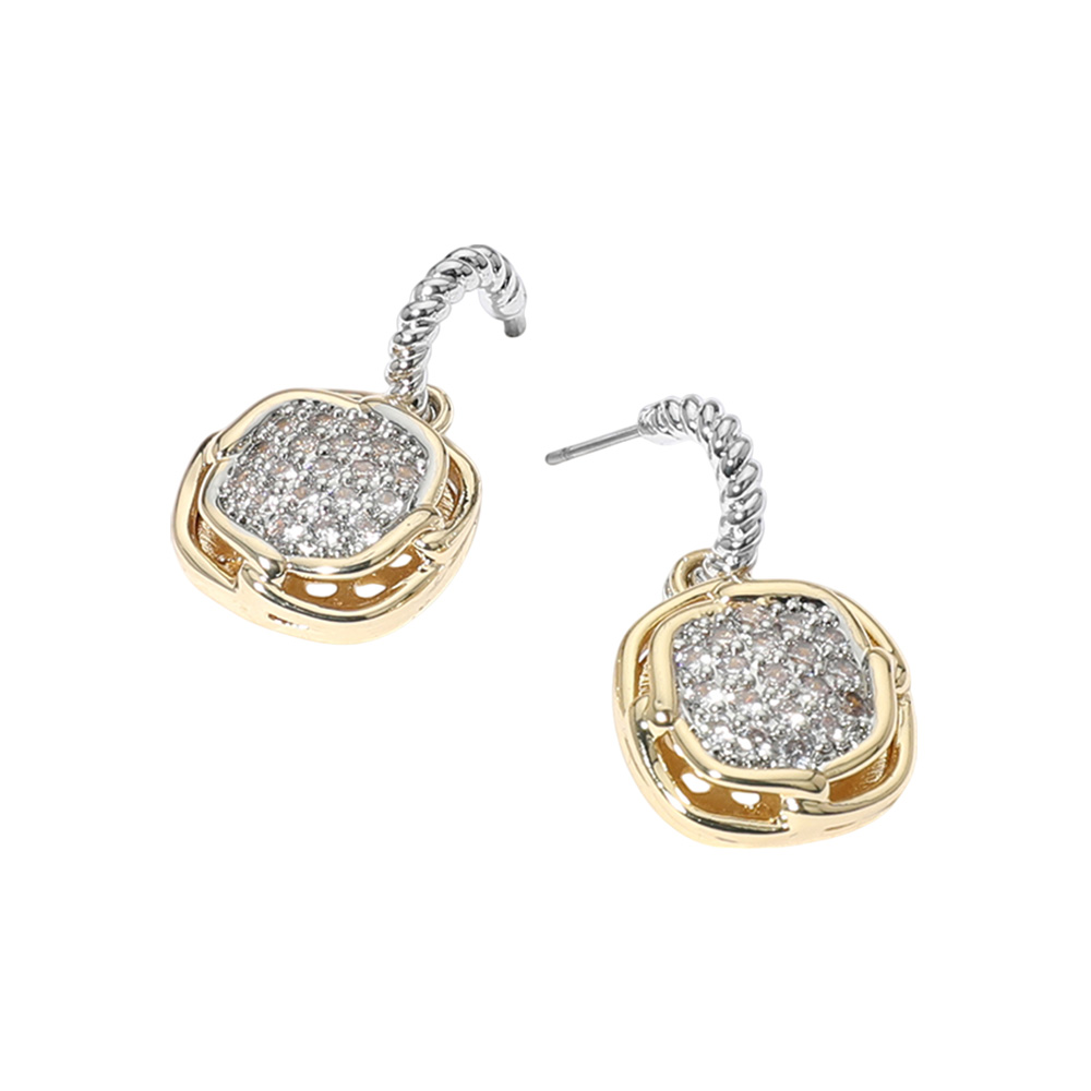 14K Gold Plated CZ Stone Paved Square Dangle Earrings