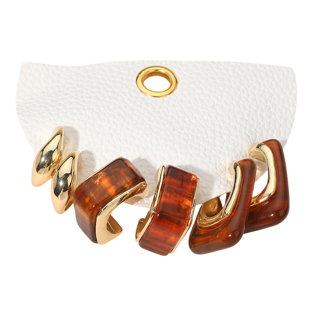 3Pairs - Chunky Resin Metal Hoop Earring Set