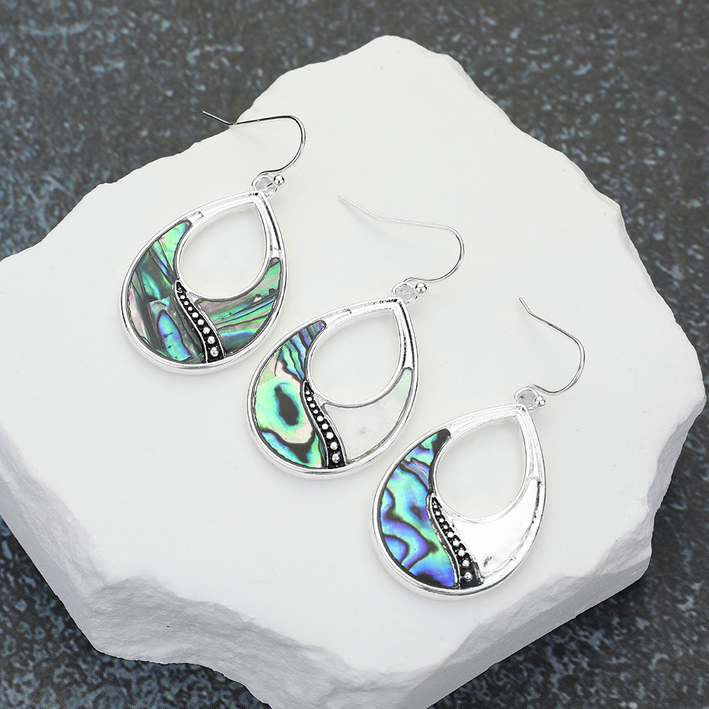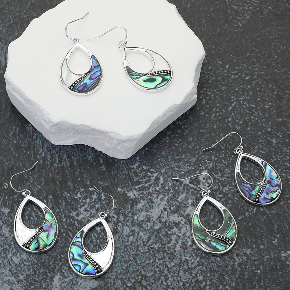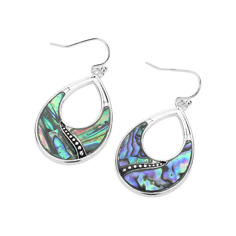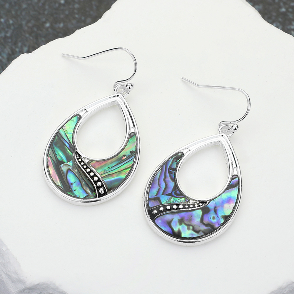 Abalone Pointed Enamel Dolphin Dangle Earrings