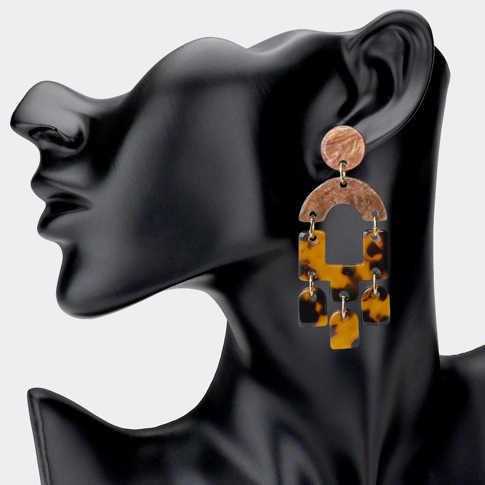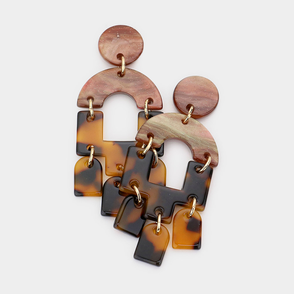 Abstract Celluloid Acetate Tortoise Link Dangle Earrings