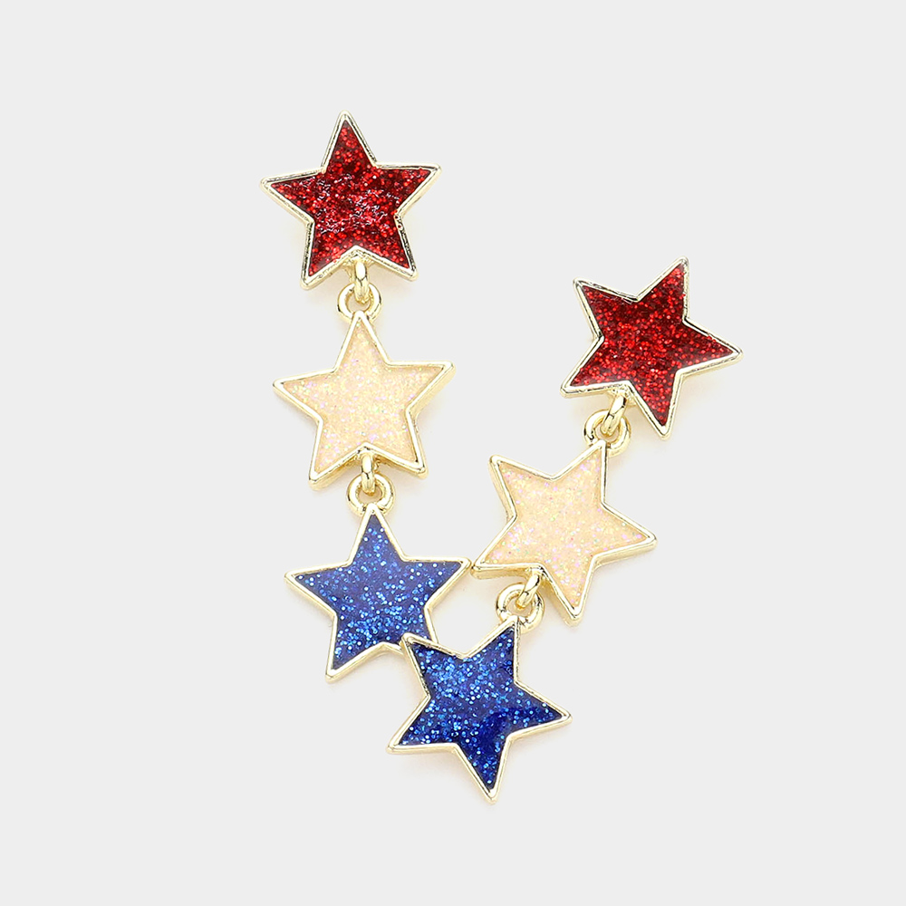 Enamel Sparkly American USA Flag Butterfly Stud Earrings