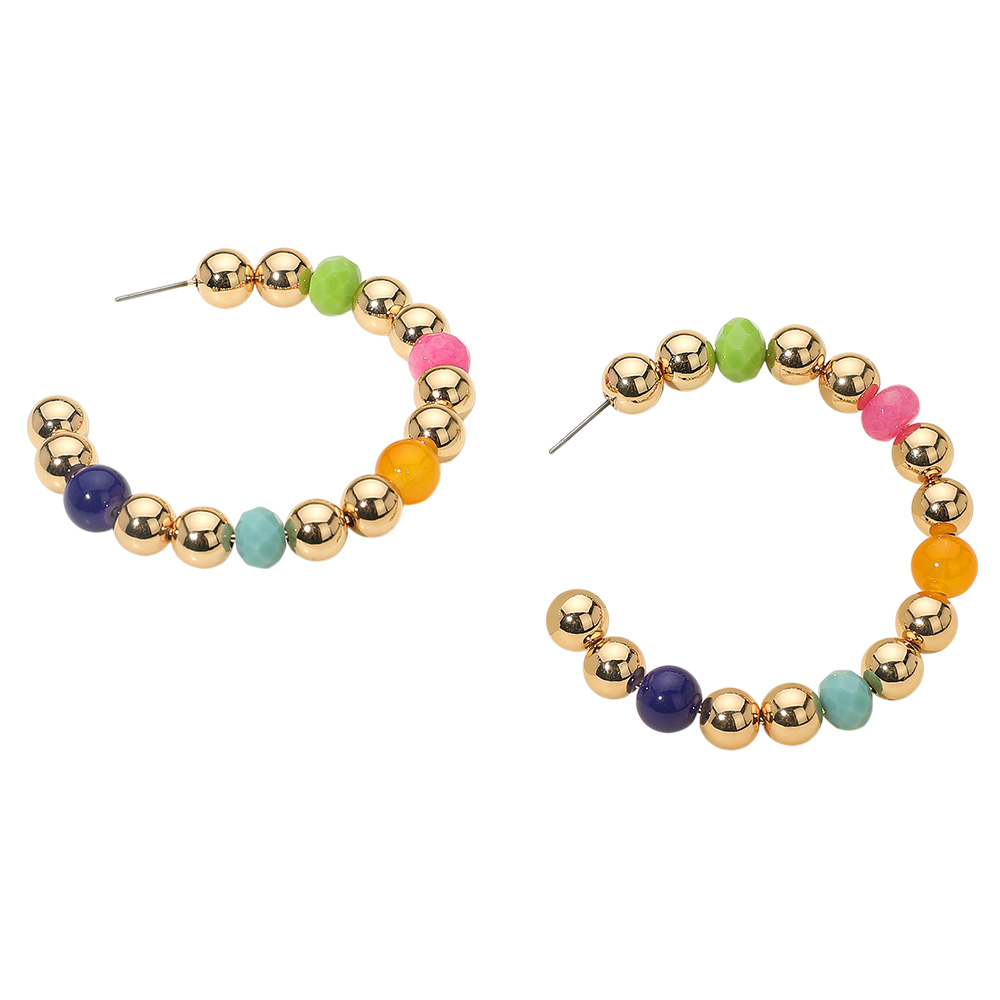 Details • Size : 2.25" X 2.25" • Post Back • Make a bold style statement with these chic beaded hoop earrings featuring glossy round beads accented with vibrant pops of color. Lightweight and playful, these hoops add charm and personality to any outfit, perfect for casual wear, parties, or gifting to someone who loves trendy accessories. • Lead and Nickel Compliant