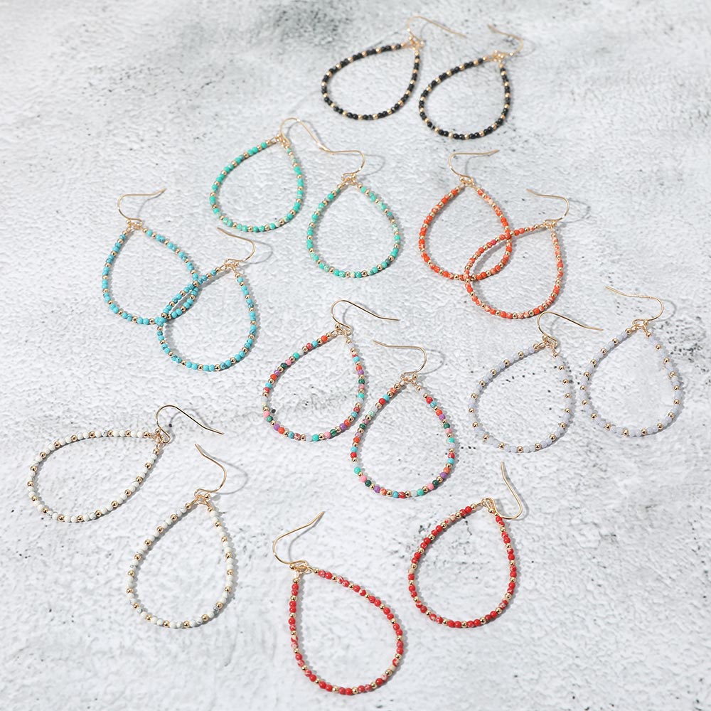Felt Back Seed Beaded Boho Fringe Dangle Earrings