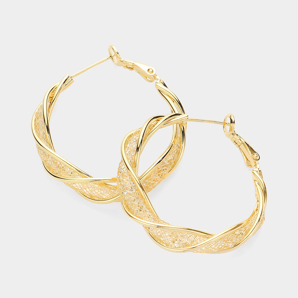 Beads Inside Metal Mesh Twisted Hoop Earrings