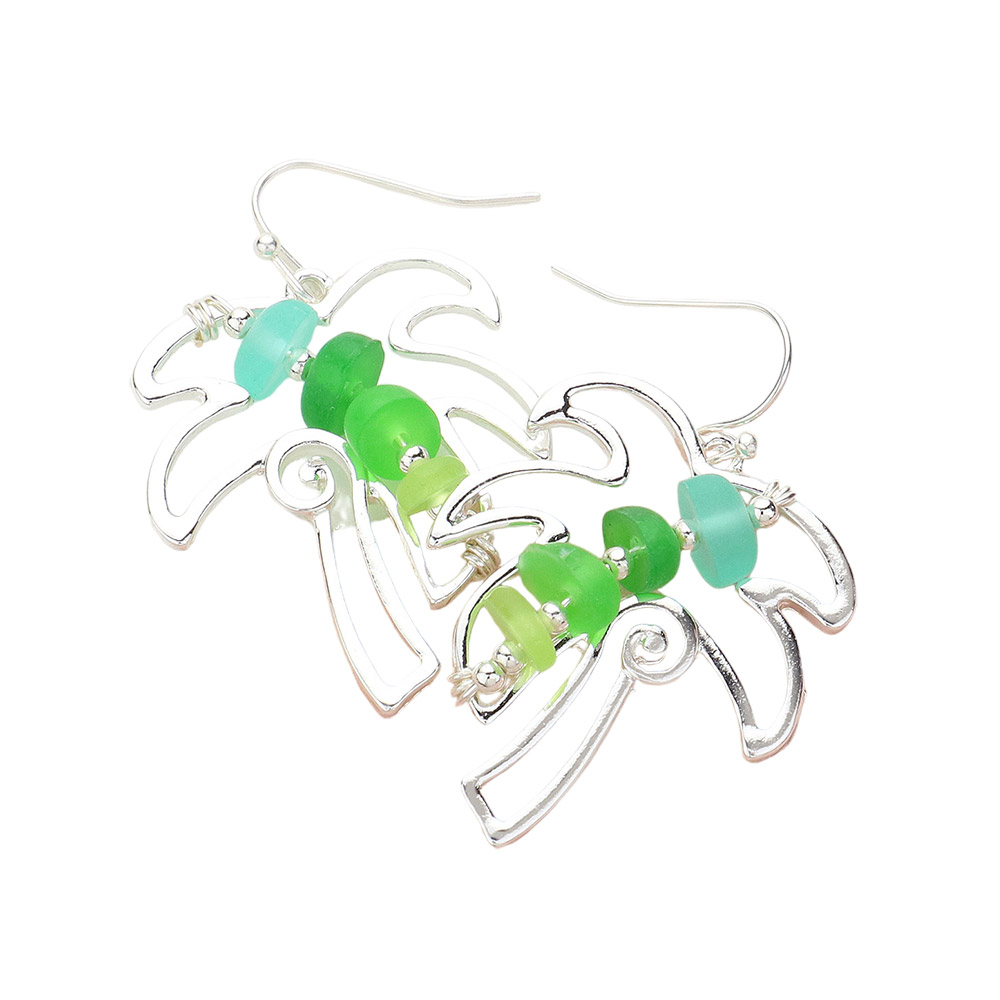 Bean Beads Accented Metal Wire Palm Tree Dangle Earrings