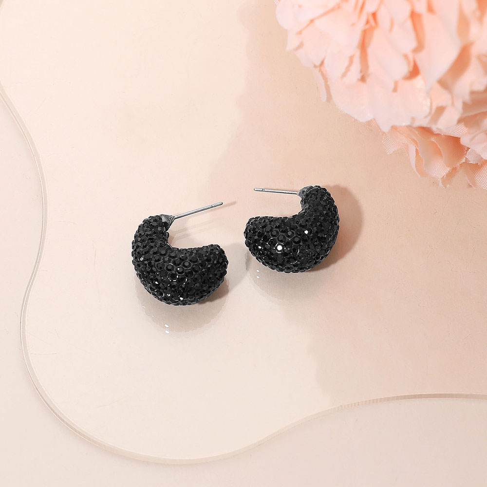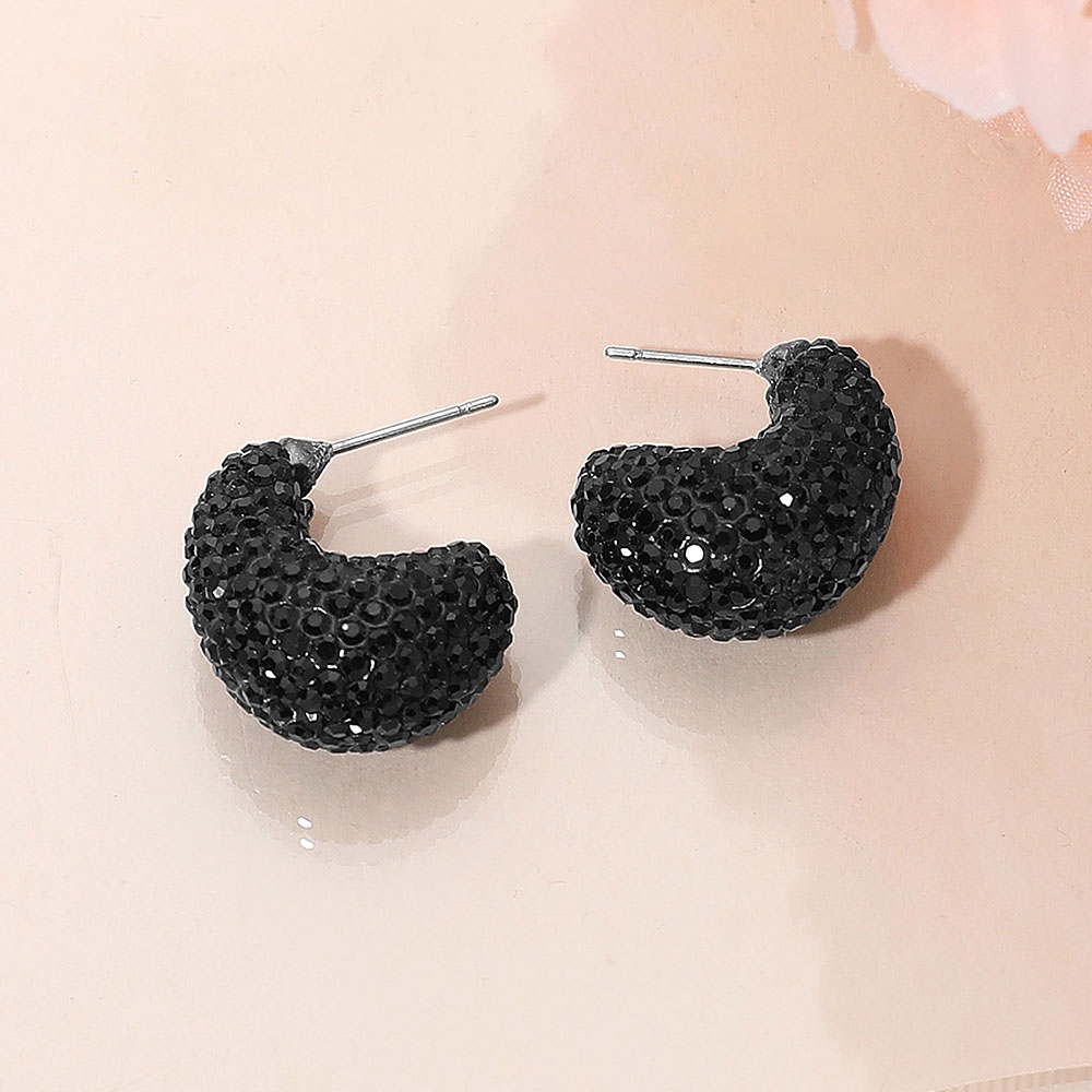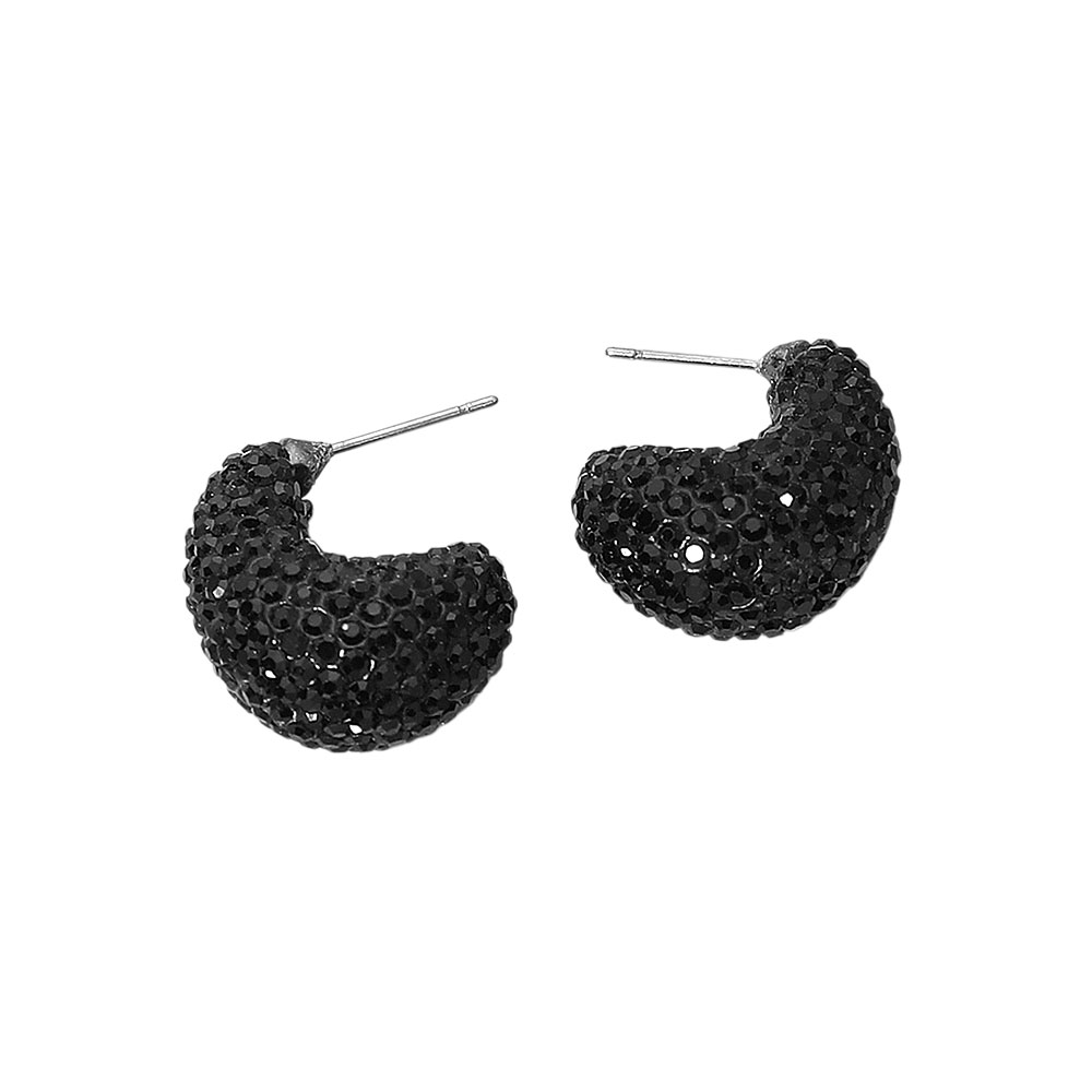 Details • Size : 0.7" X 0.9" • Post Back • Compact hoop earrings featuring dazzling rhinestone detailing for a subtle yet striking shine. Perfect for adding a touch of glamour to casual or formal looks. Lightweight and comfortable, these small hoops bring elegance and sophistication to any jewelry collection or outfit. • Lead and Nickel Compliant