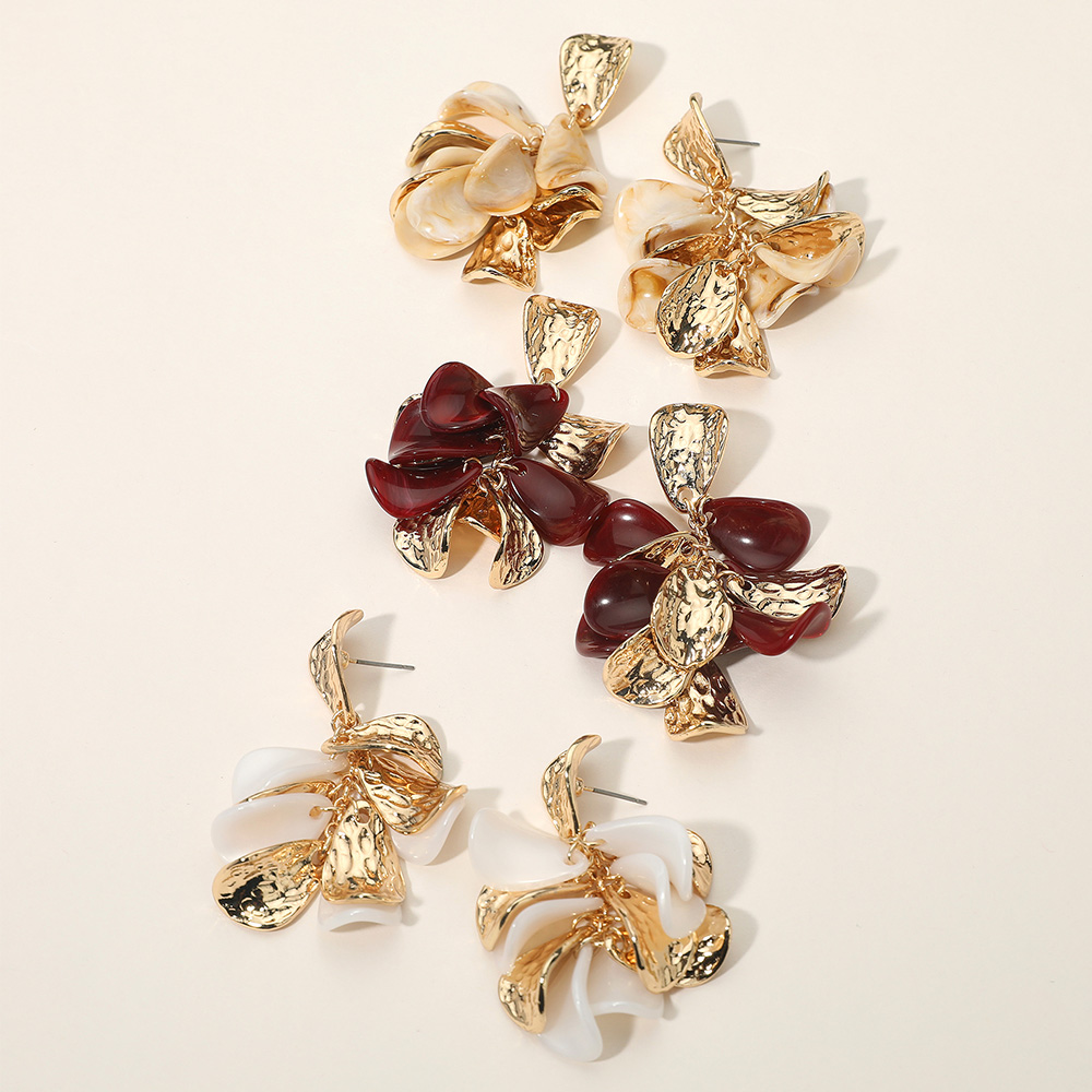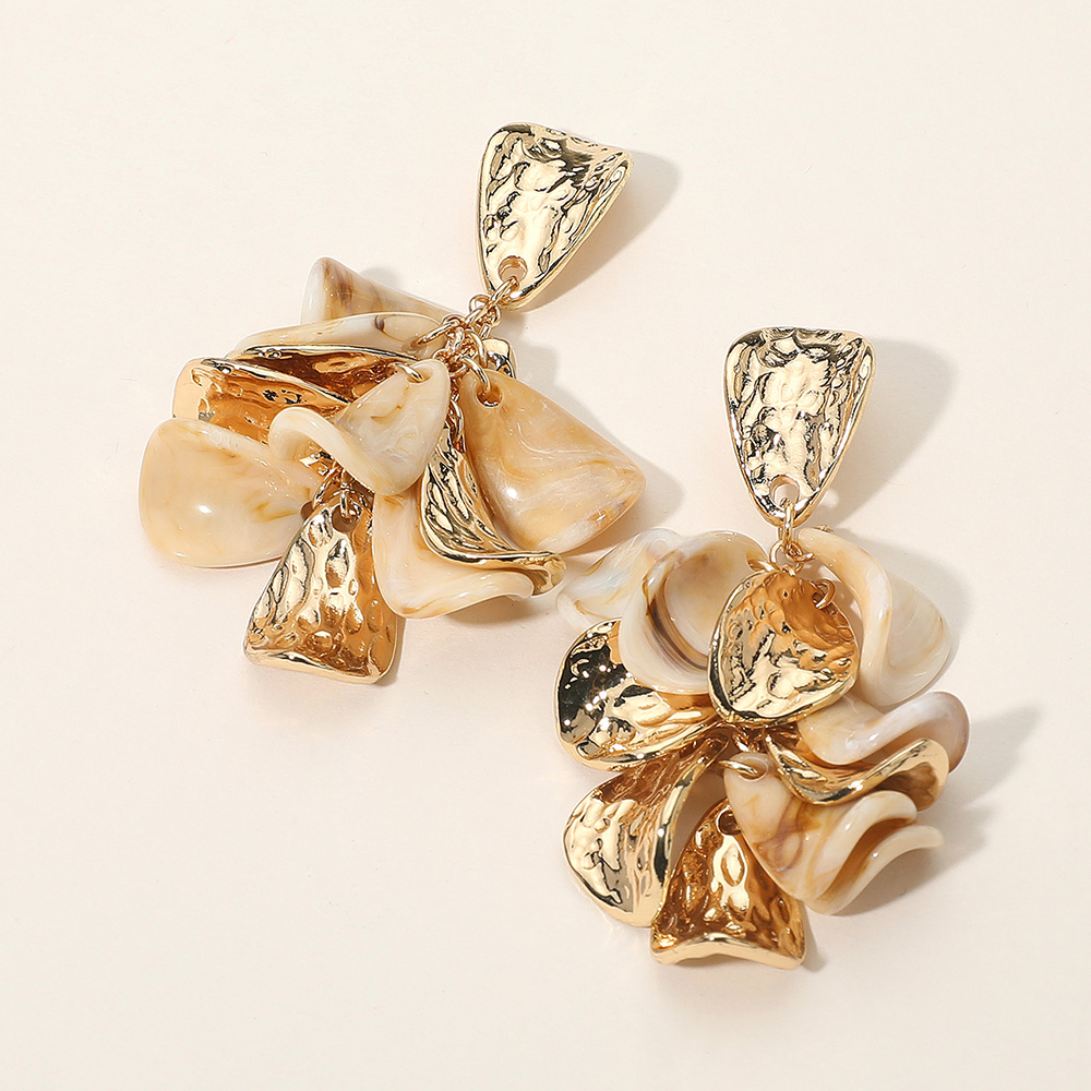 Bold Floral Design Textured Petal Statement Drop Earrings