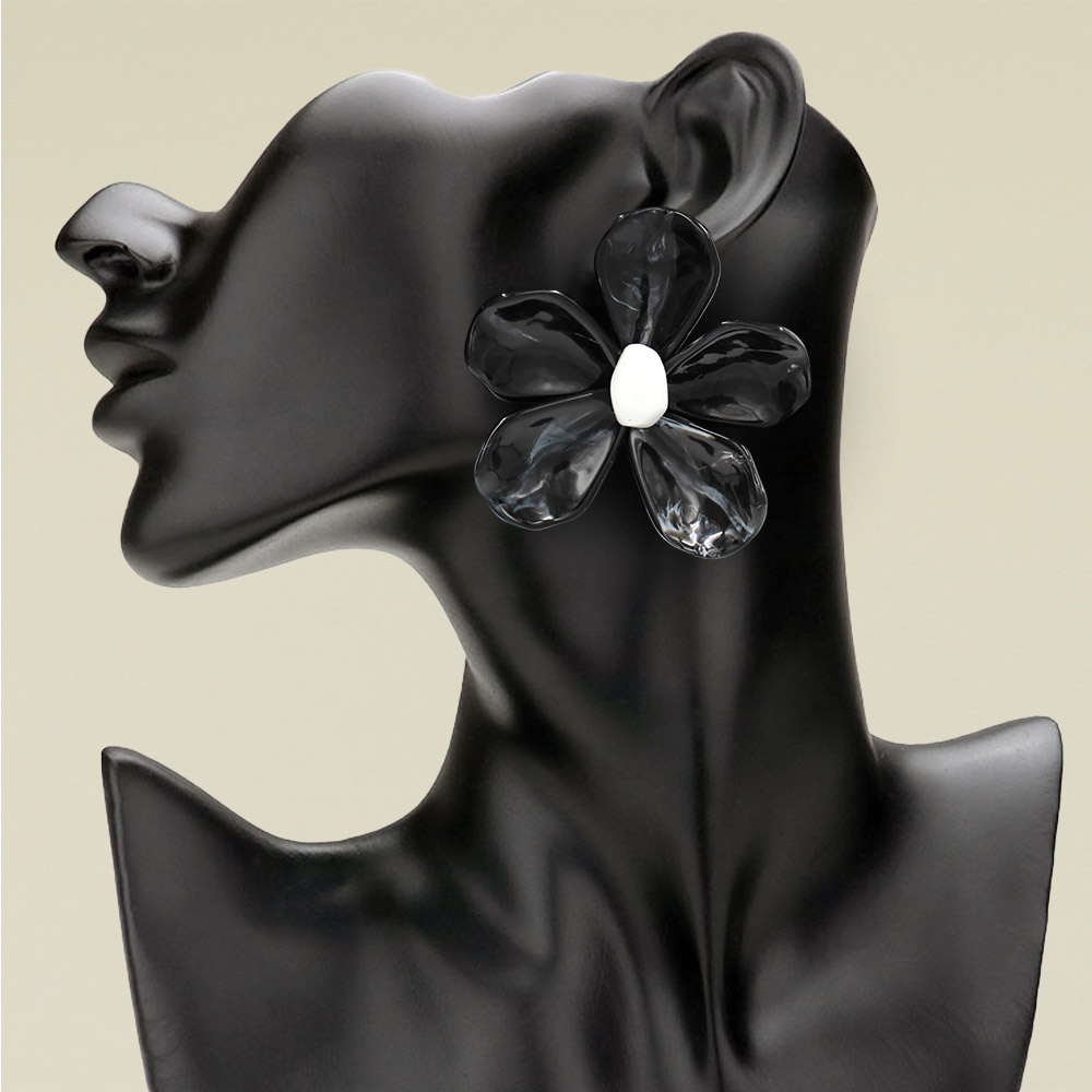 • Bold statement earrings featuring large petal-shaped floral design with glossy finish. Perfect for elevating any outfit, these eye-catching earrings add a touch of artistic flair and elegance, ideal for special occasions, photoshoots, or standout fashion looks.