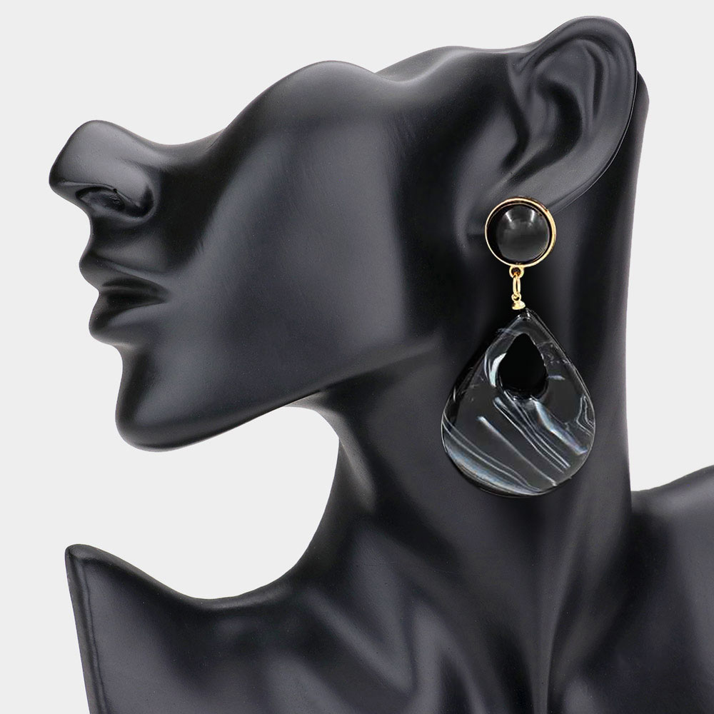 Bold Resin Teardrop Cutout Dangle Earrings Bold Resin Teardrop Cutout Dangle Earrings