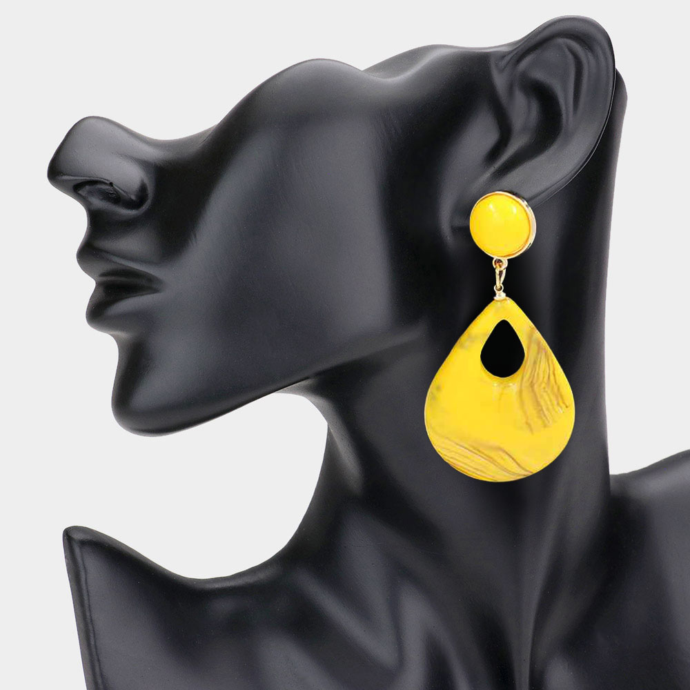 Bold Resin Teardrop Cutout Dangle Earrings Bold Resin Teardrop Cutout Dangle Earrings