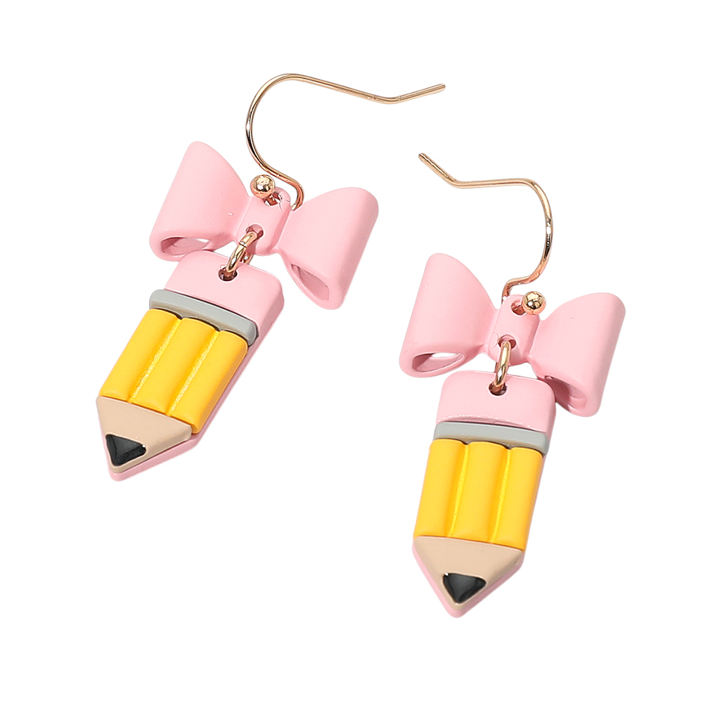Details • Size : 0.75" X 1.6" • Fish Hook Back • Adorable pencil bow drop earrings featuring a playful school-themed design perfect for teachers, students, and back-to-school gifts. Lightweight, charming, and fun for everyday wear or classroom celebrations. A unique accessory that adds personality and creativity to any outfit. • Lead and Nickel Compliant